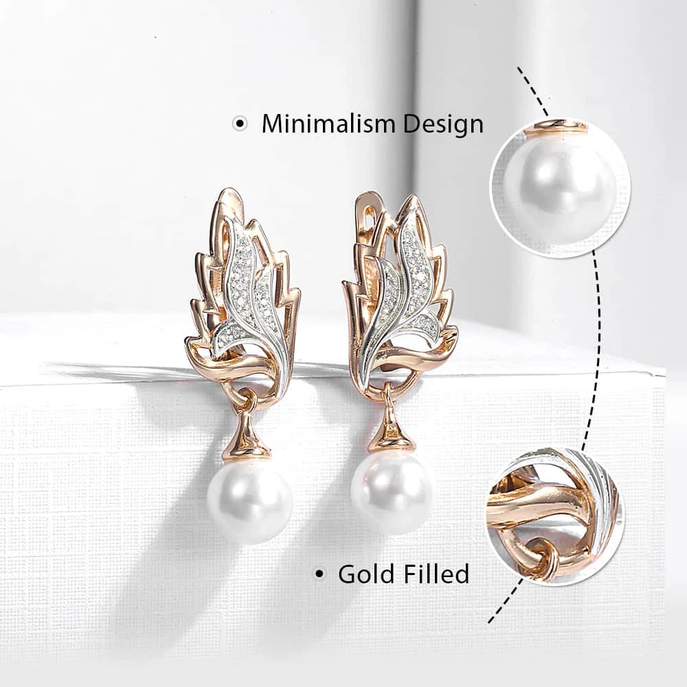 Серьги женские из розового золота 585 пробы, с прозрачными фианитами и жемчугом, LGE143