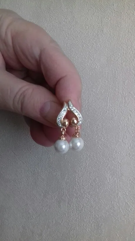 очень красивые сережки. на ушке смотрятся изящно, очень украшают. Все знакомые делают комплименты. никто и не подозревает, что это не золото.