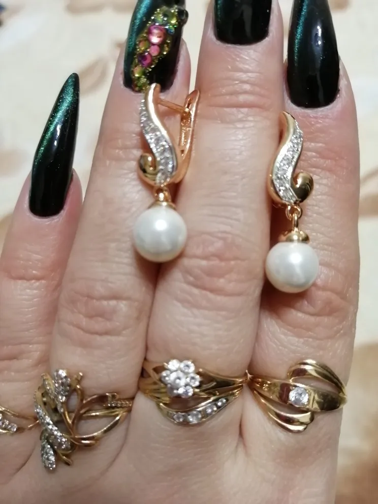 Заказ шёл 20дней, серёжки шикарные, от золотых не отличить, застежка крепкие, посмотрим как будут в носке, спасибо продавцу, всем женщинам рекомендую
