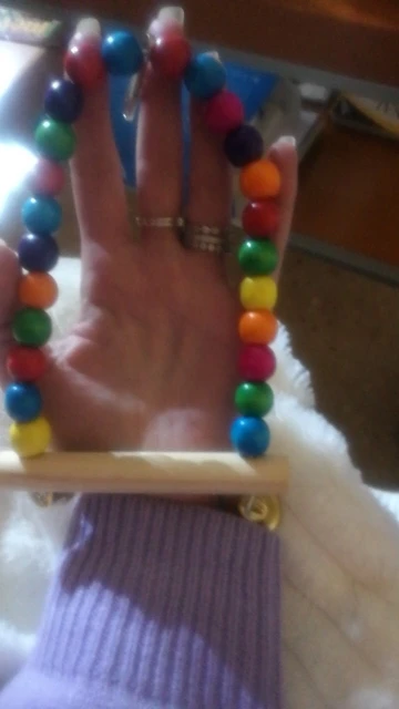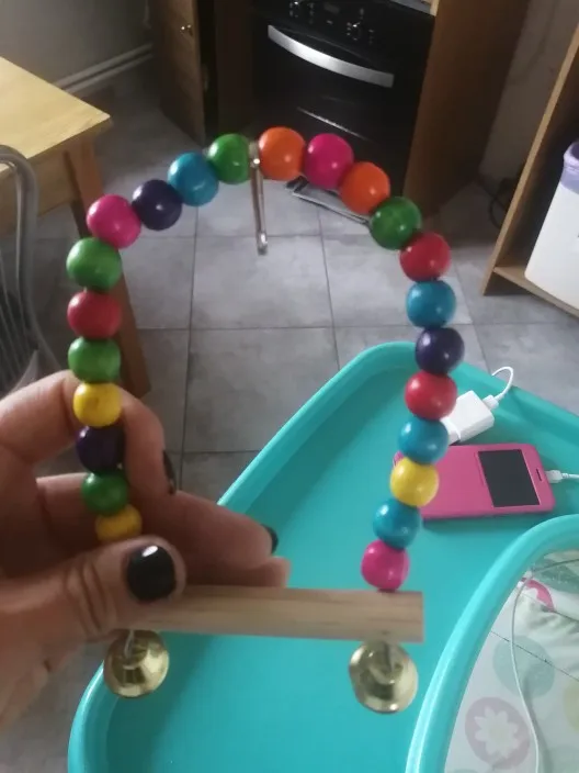 Посылка шла долго. Позвонили с почты. Забрала вместе с другим товаром. Качельки по сути норм, понравилась. Сделана прочно, колокольчик звонкие. Бусины покрашенны. Есть небольшой брак... Одна бусина с дифектом. Не критично. Пока попугай присматривается.