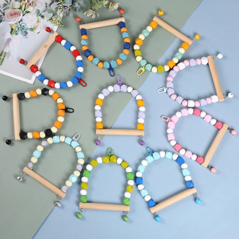 Деревянные игрушки-качели для попугаев, аксессуары для клетки для птиц, подставка для птиц, вешалка для птиц, качели для птиц, игрушка-качели с красочными бусинами, колокольчики