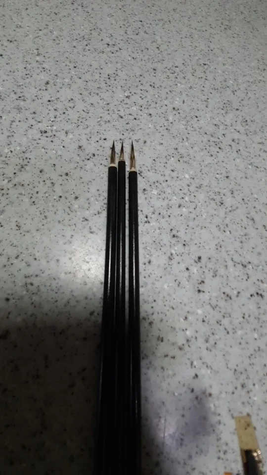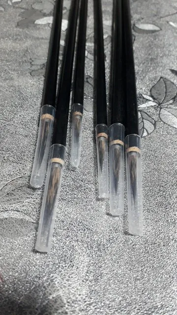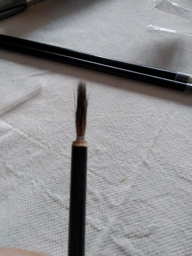 Ручка кисточки из бамбука, длинная и легкие, ворс при размачивании немного полинял но не сильно пару волосинок. Кисточка самая маленькая мягкая очень, но для меня пойдет осваивать азы рисования брал для акварели.