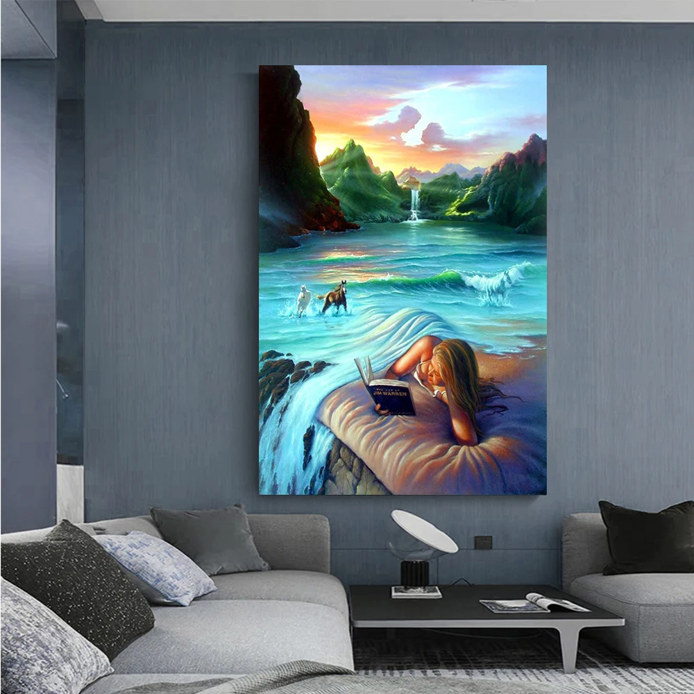 Алмазная живопись сделай сам, вышивка с изображением натуральной реки и девушки dimaond, полноразмерная мозаика с акварелью