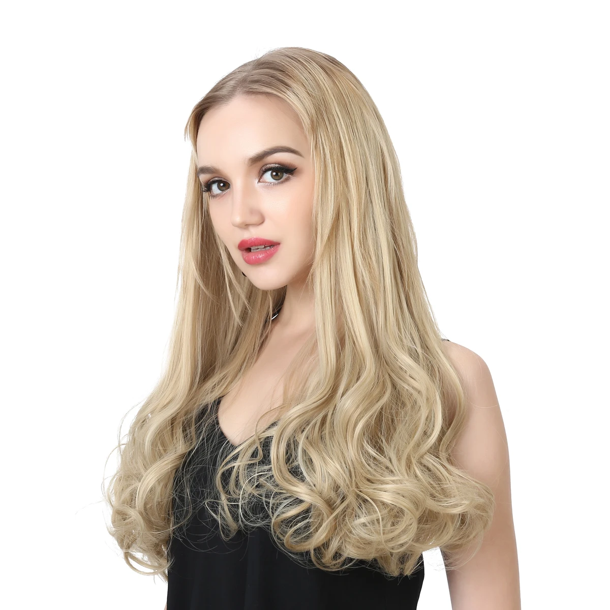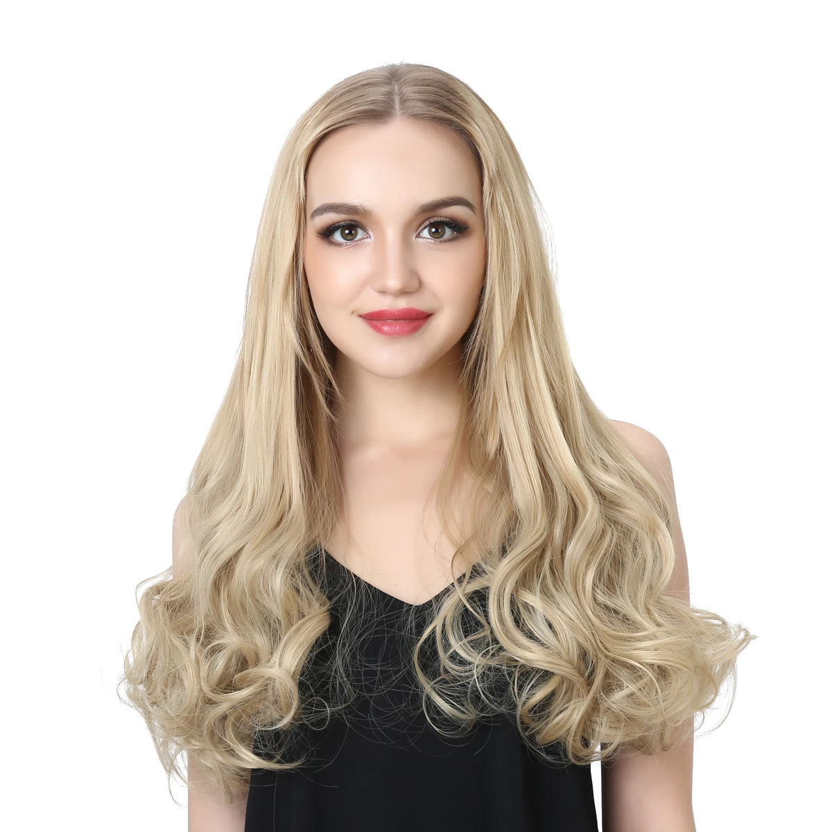Полупарик Синтетический на клипсе в U-образной части 34 длинные вьющиеся 24 дюйма толстые волосы для наращивания головка для женщин черный коричневый UW04