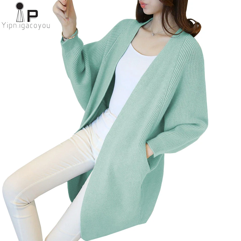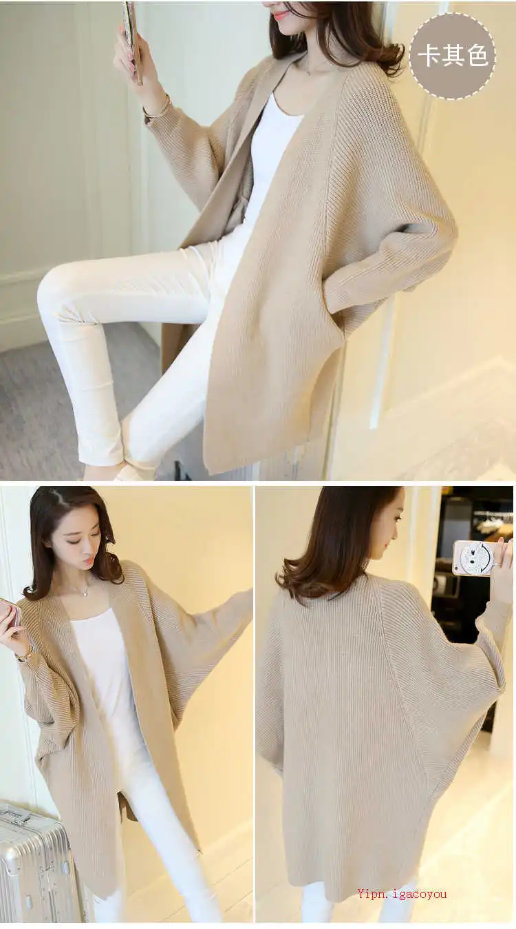 Женский зимний свитер, кардиганы, модные вязаные свитера с рукавом летучая мышь, женские топы, свободный осенний вязаный женский Кардиган с длинным рукавом