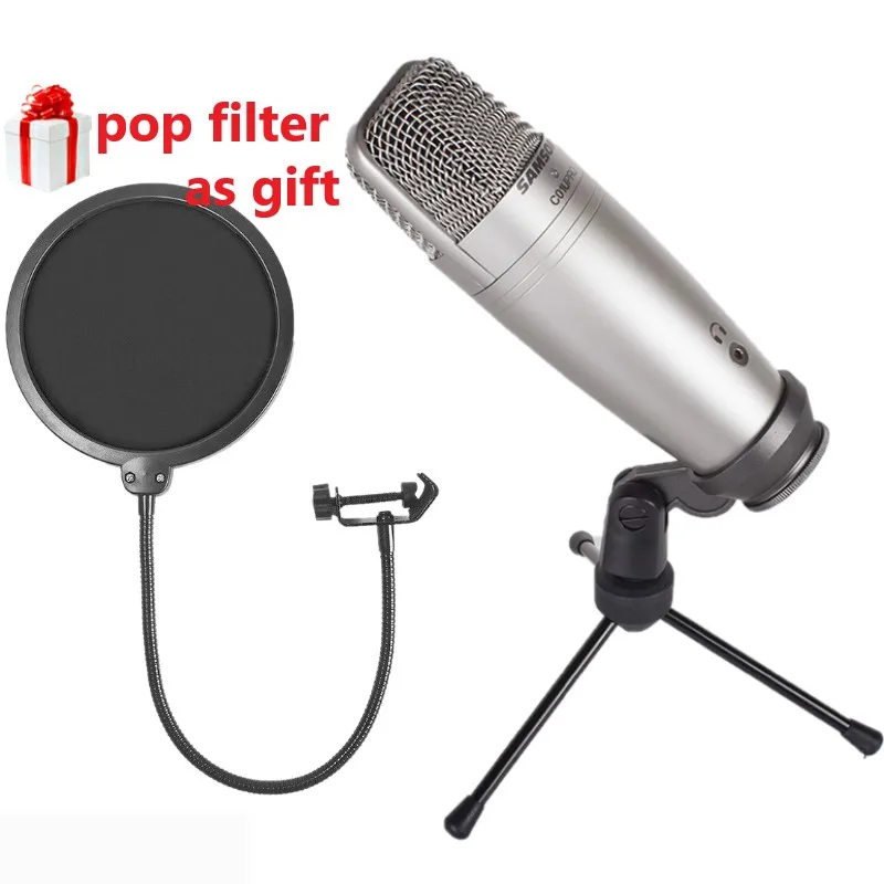 Конденсаторный микрофон Samson C01U Pro, с поп-фильтром, USB, студийный, для мониторинга в реальном времени, с большой диафрагмой