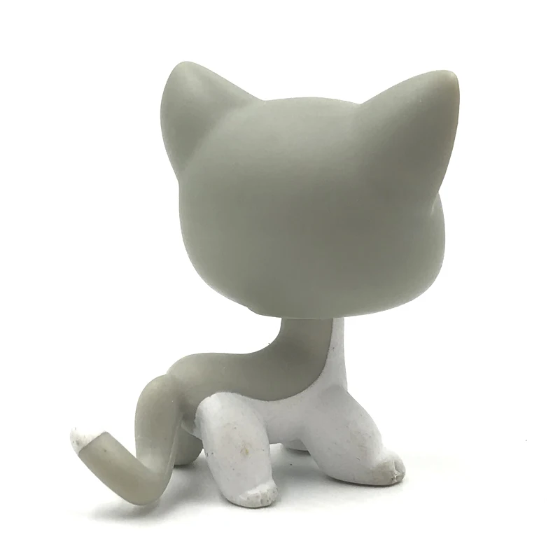 LPS редкая маленькая кошка из коллекции pet shop, блестящая голова игрушки стоят #138, старые оригинальные Короткие шерстяные кошачьи серые и белые котята с коричневыми глазами