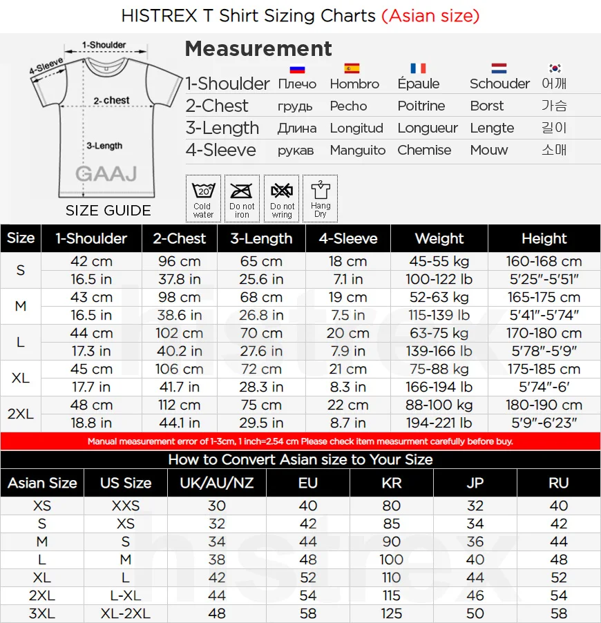 Мужская футболка с коротким размером(Азиатский размер) Найдите свой идеальный размер ▼