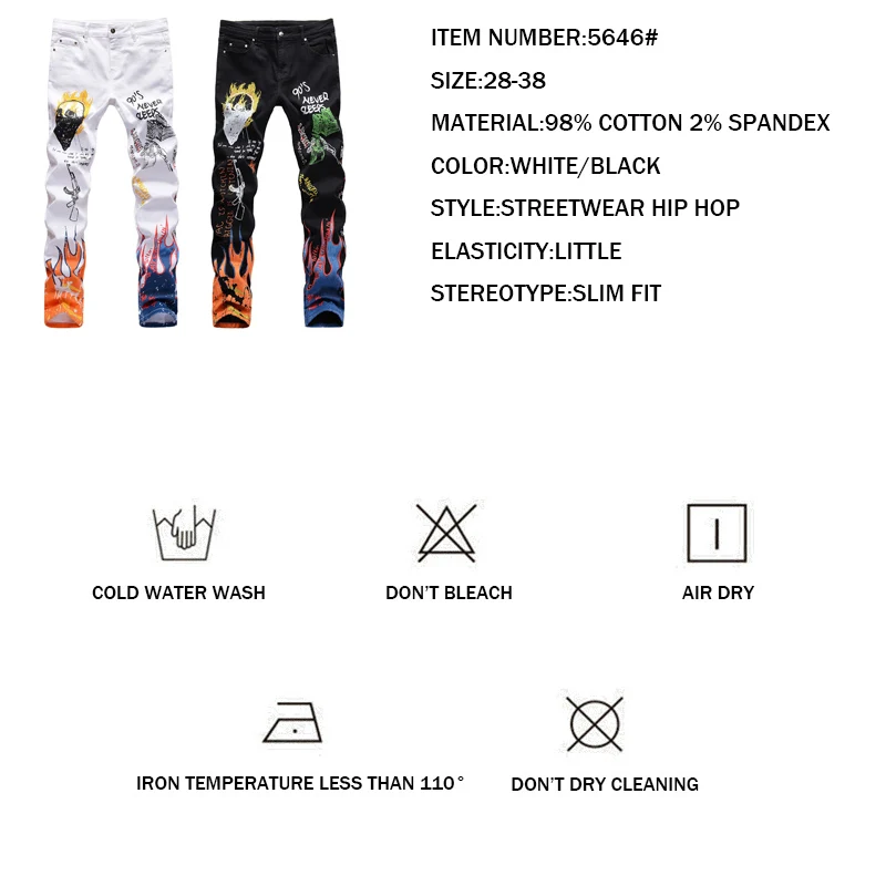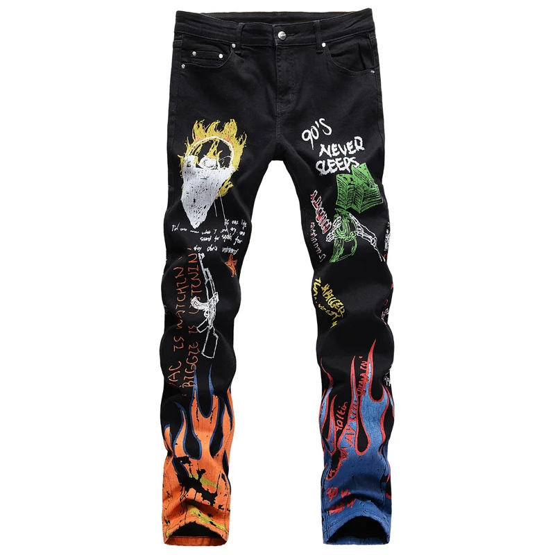 Мужские облегающие джинсы, эластичные брюки-карандаш в стиле хип-хоп, с принтом, уличная мода