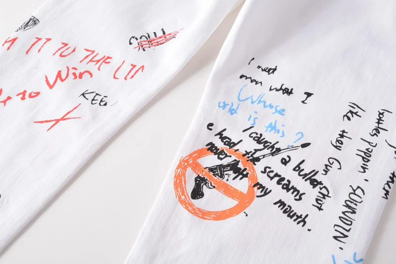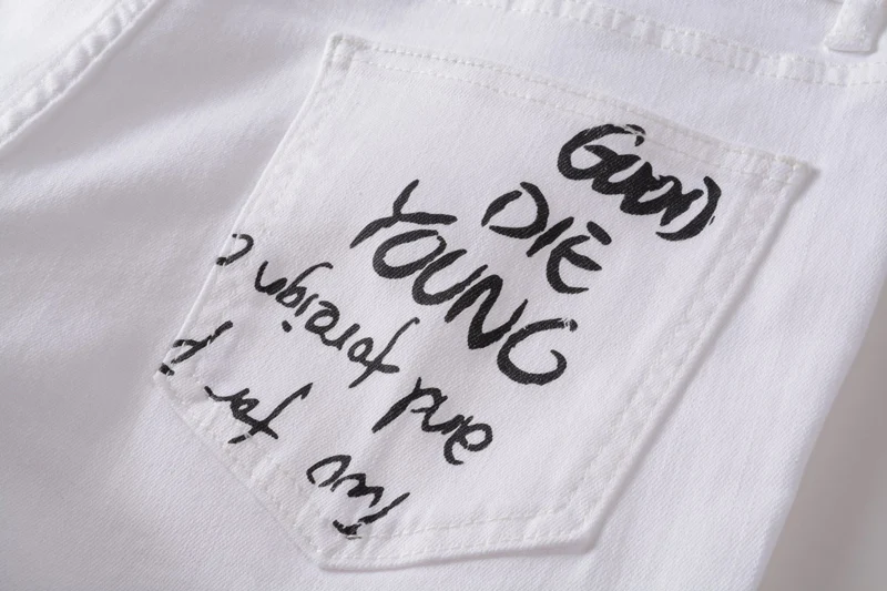Американский уличный Стиль модные мужские джинсы Белый Черный Slim ...