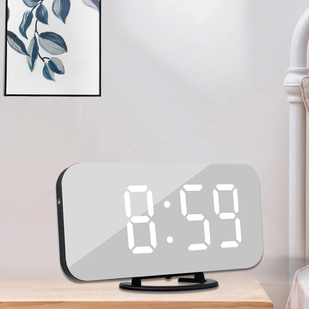 Зеркальный будильник с функцией повтора светодиодный светодиодные цифровые часы-будильник для спальни, подсветка, Зарядка телефона, электронные подвесныенастольные часы