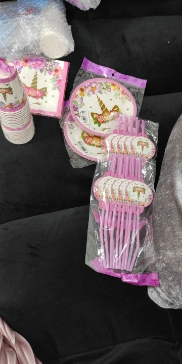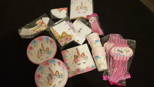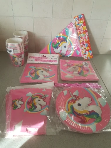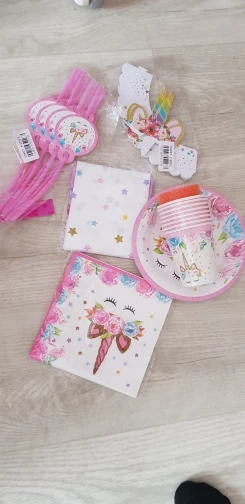 Набор одноразовой посуды для дня рождения девочки, Розовый Единорог, салфетка под тарелку кружку