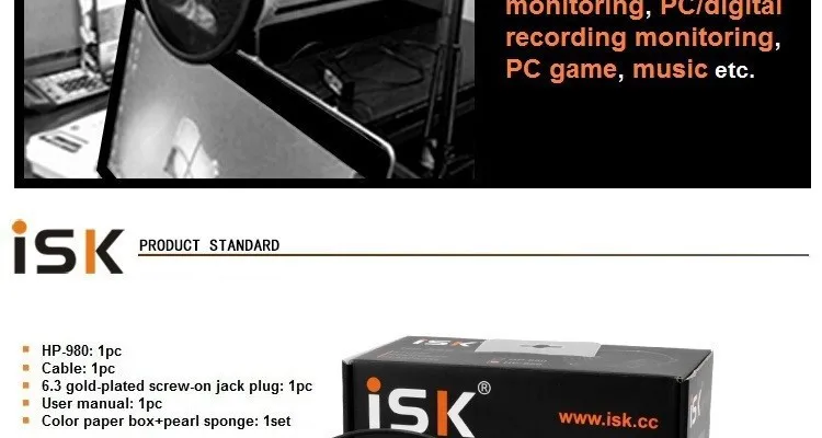 Шумоподавляющие наушники ISK HP 980 HP-980 с закрытой спинкой, Hi-Fi, для диджея, студийного мониторинга, наушники с микс-записью, гарнитура PK K272
