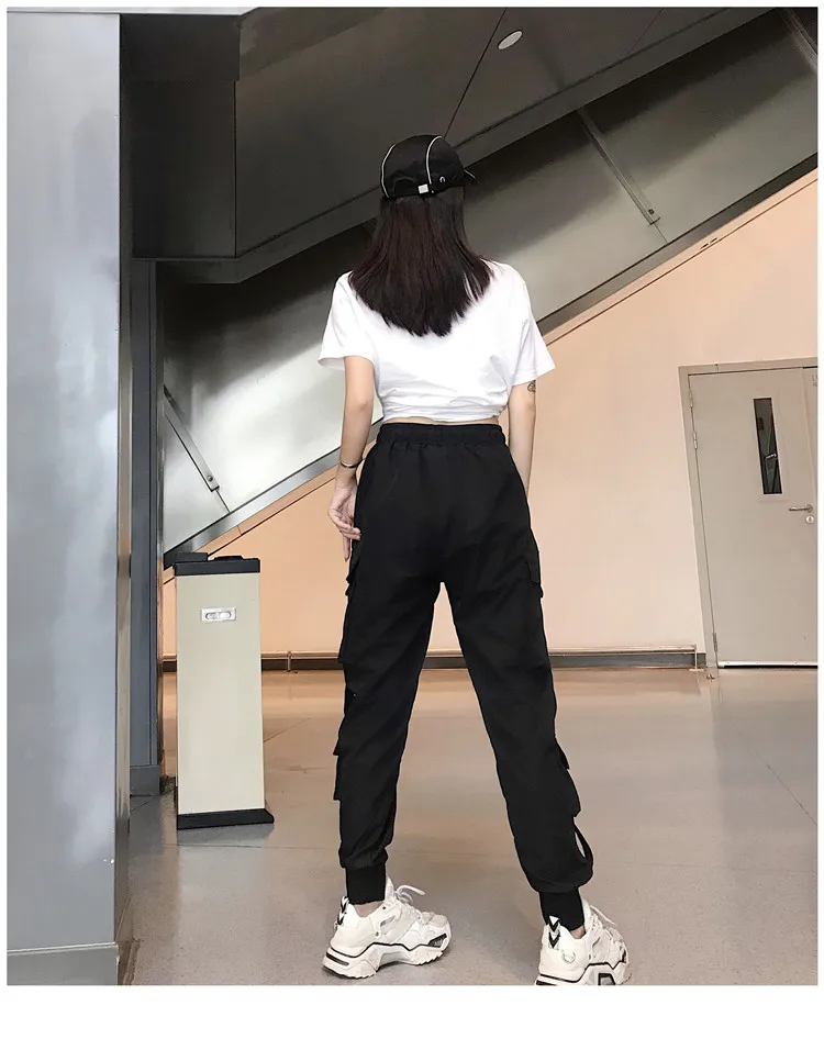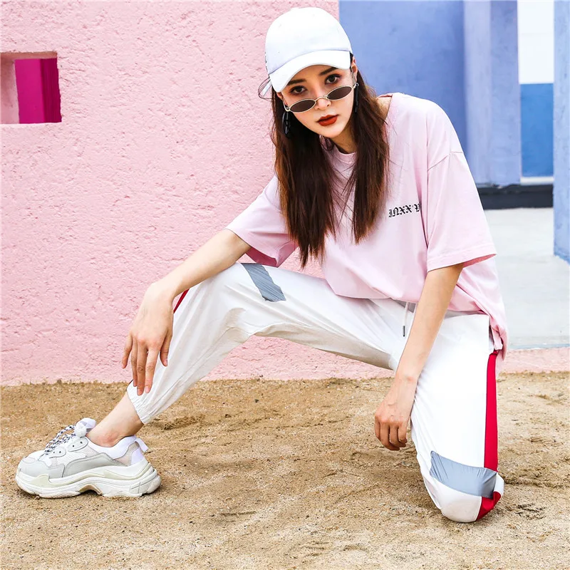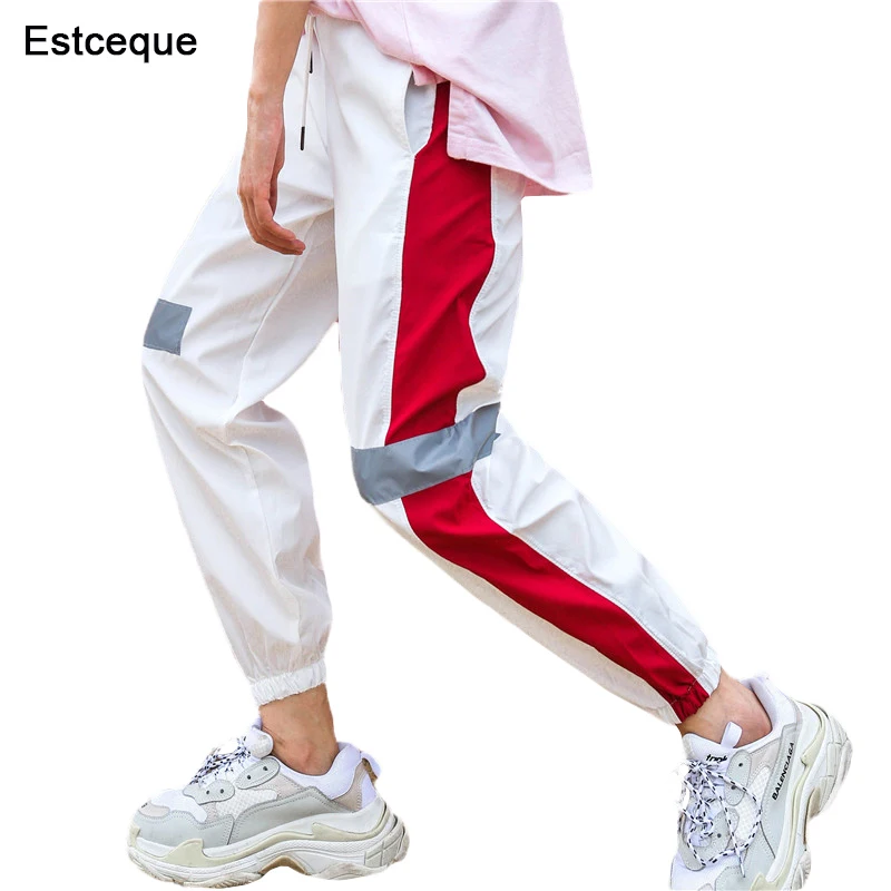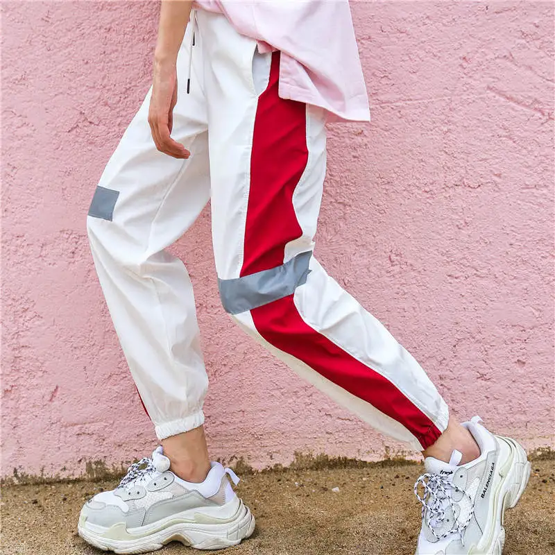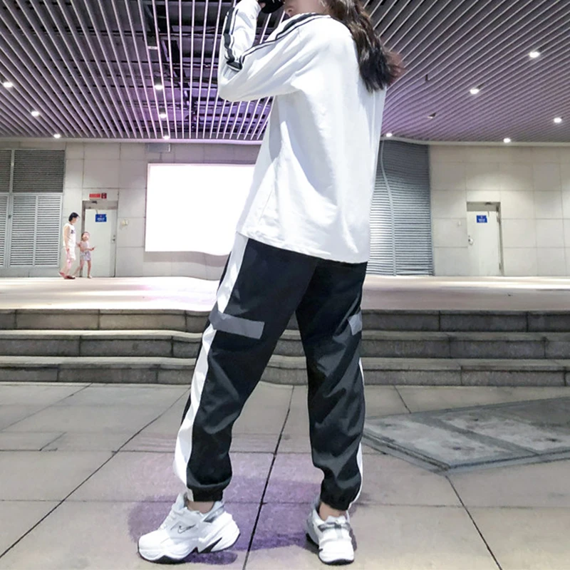 Брюки женские с завышенной талией, Модные свободные штаны-султанки в стиле хип-хоп, повседневные облегающие брюки с светоотражающей полосой, 2021