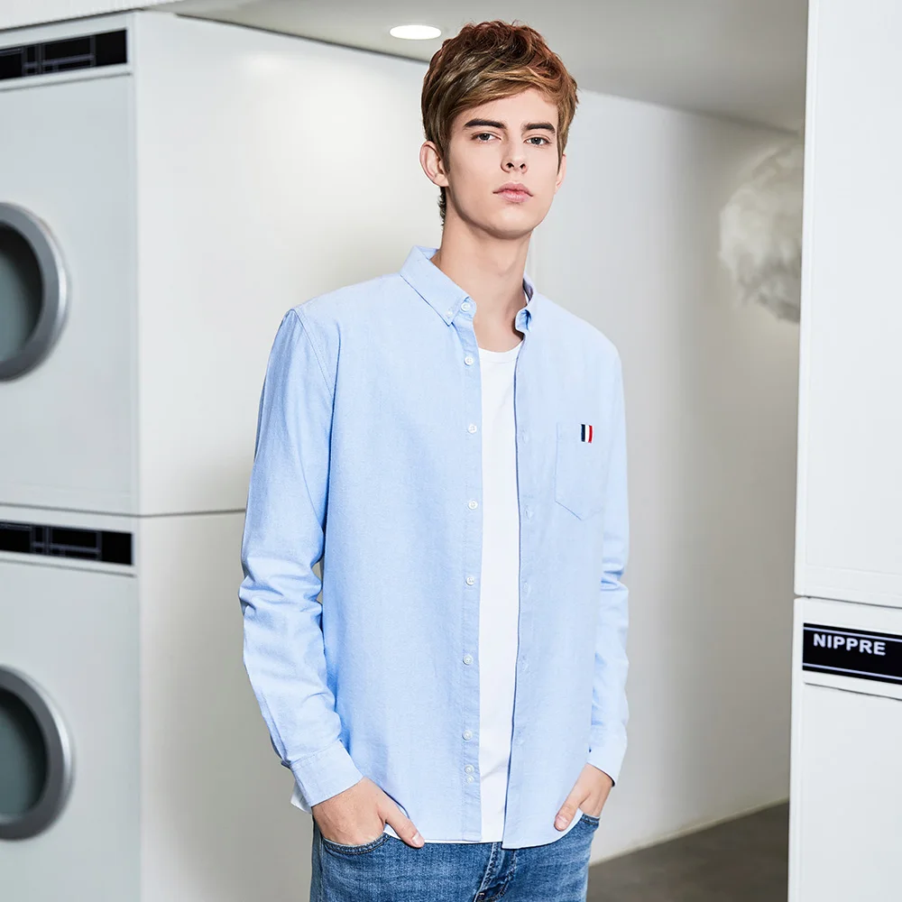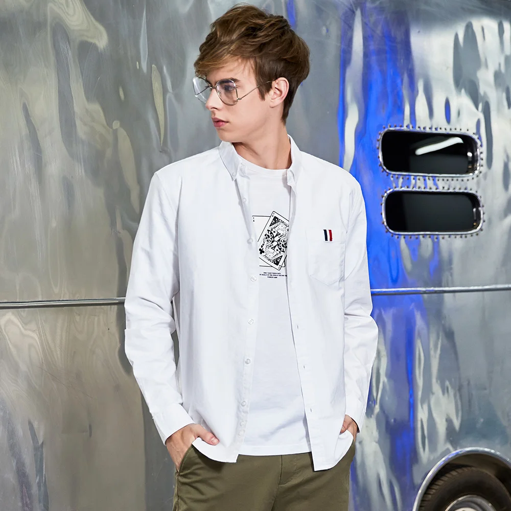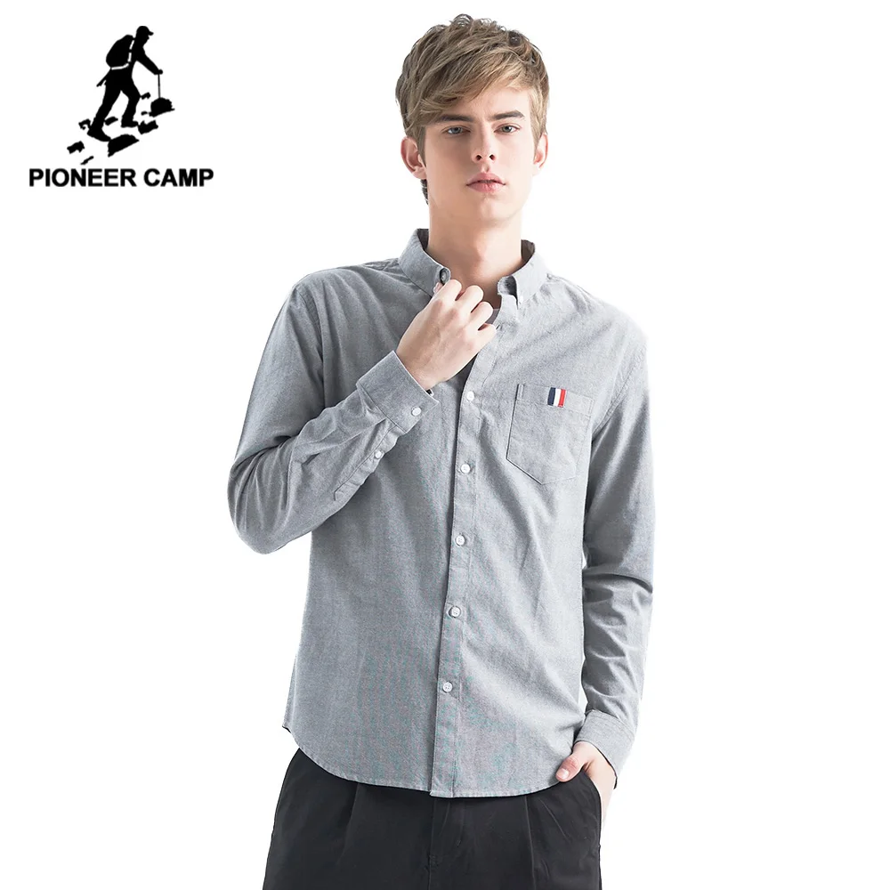 Мужская Однотонная рубашка из ткани Оксфорд Pioneer Camp, повседневная классическая рубашка с длинными рукавами, левым нагрудным карманом, ACC901193