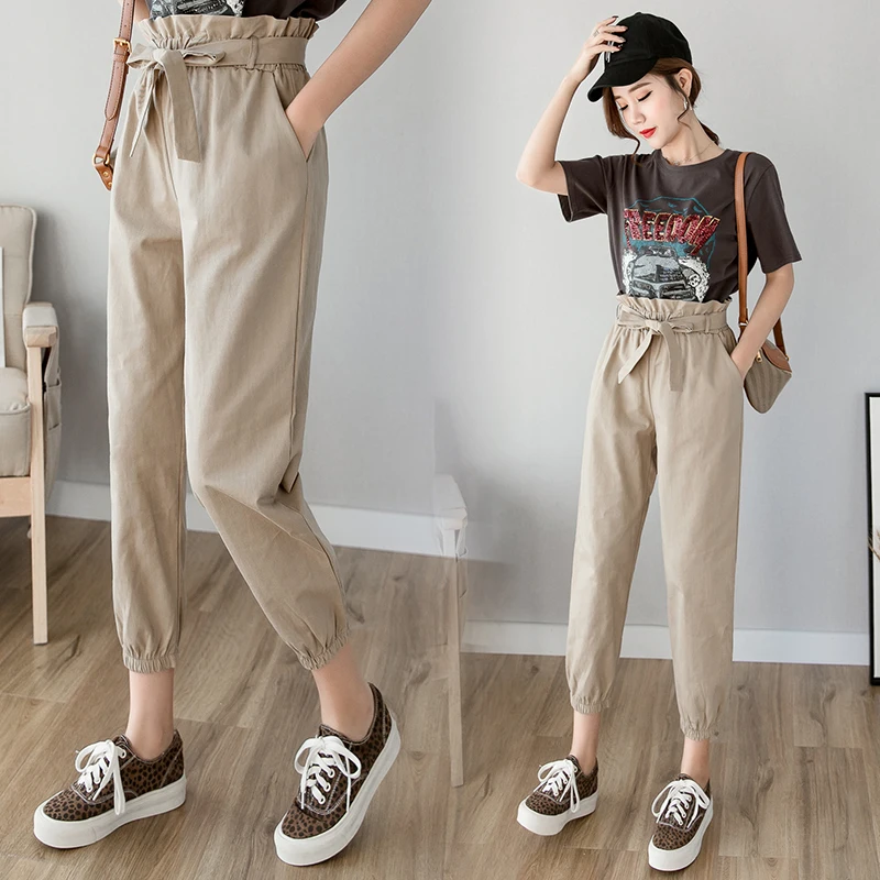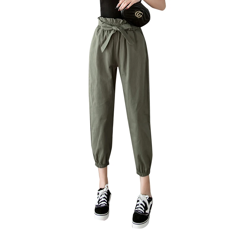 Женские брюки, весна-лето 2019, модные однотонные свободные брюки-шаровары с высокой талией, брюки-карандаш, повседневные брюки-карго, уличная одежда