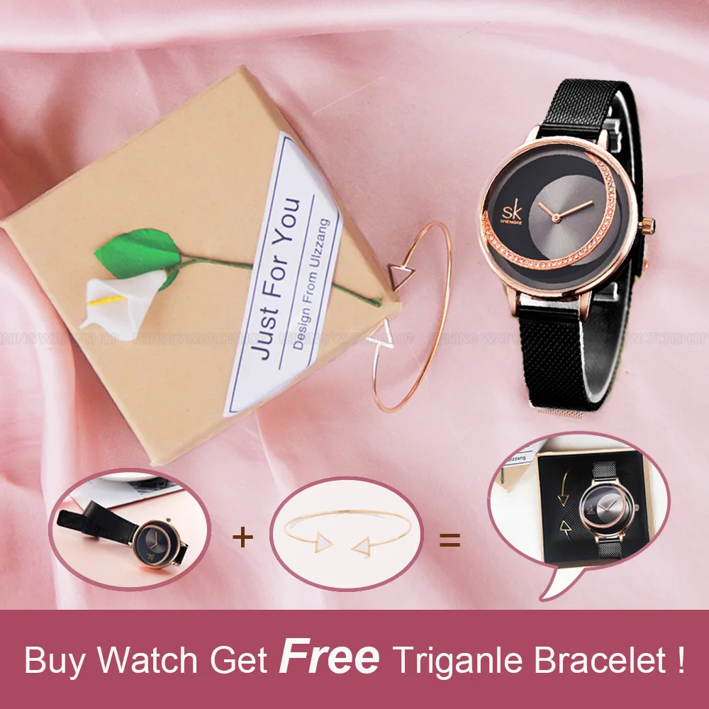 Часы SHENGKE женские, элегантные из нержавеющей стали, водонепроницаемые