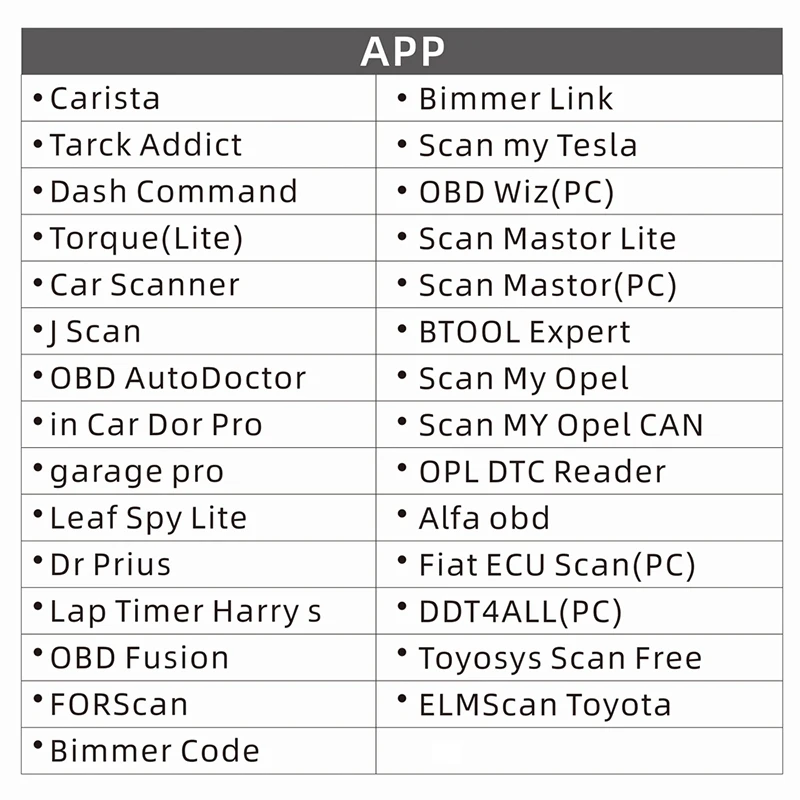 1. Американская автомобильная Поддержка автомобиля после 1998 года 【Chrysler,Ford,GM,Jeep ..........】2. Европейская Автомобильная Поддержка автомобиля после 2000 года 【Alfa Romeo,SAAB,Acura ..........】3. Азиатский автомобиль поддержки после 2002 года, (Япония и Корея и Китай и так далее) 【KIA,Isuzu,Honda,Mitsubishi ..........】4. Поддержка российских автомобилей после 2012 года 【ВАЗ/УАЗ/газ ..........】