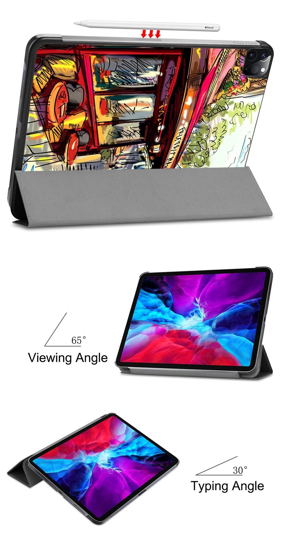 [Разные углы]: Удобное и научное положение стойки для просмотра или ввода на экране. Вы можете использовать режим подставки при покраске, просмотре телевизора, Facetime, чтении, наборе текста.