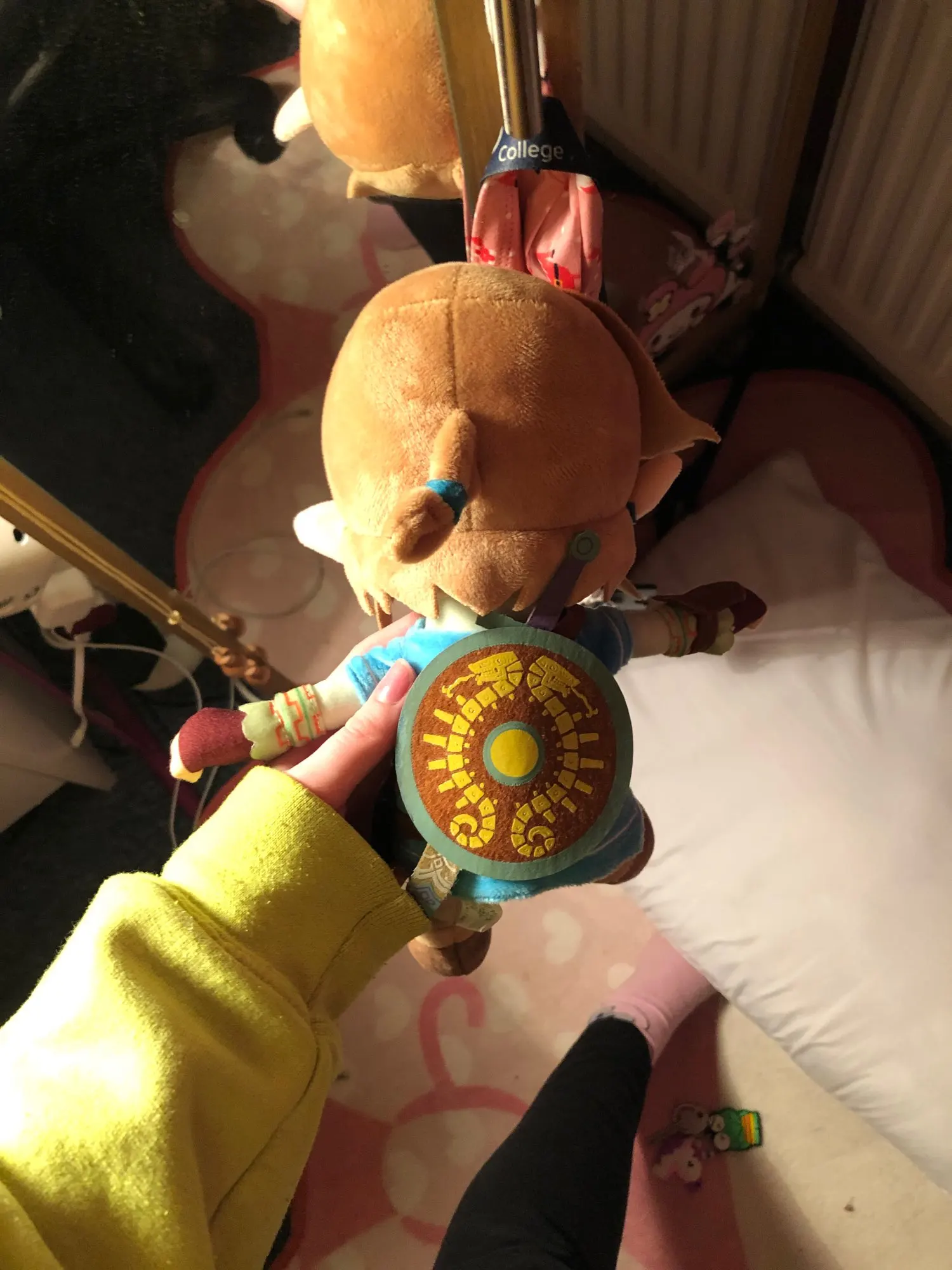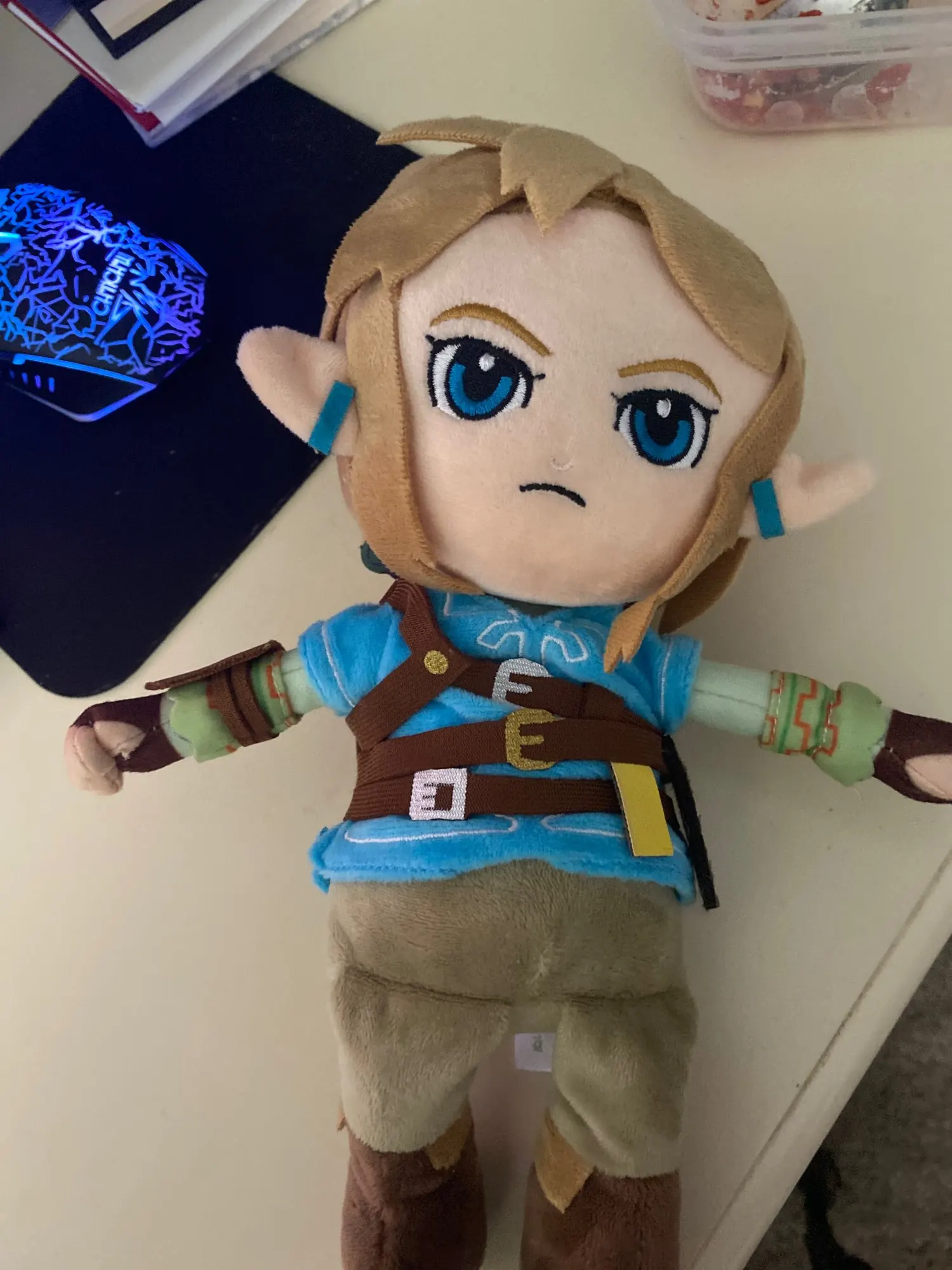 Линк пришел с неправильно пришитым ухом, оно без сережки и развернуто вниз. Так же был сильно помят меч. Он куплен на подарок, поэтому очень обидны такие дефекты. Я открыла спор с продавцом, чтобы решить этот вопрос. Жду ответ. В остальном игрушка милая и почти такая же, как на фото, правда сильно мятая, но я постараюсь ее разгладить.