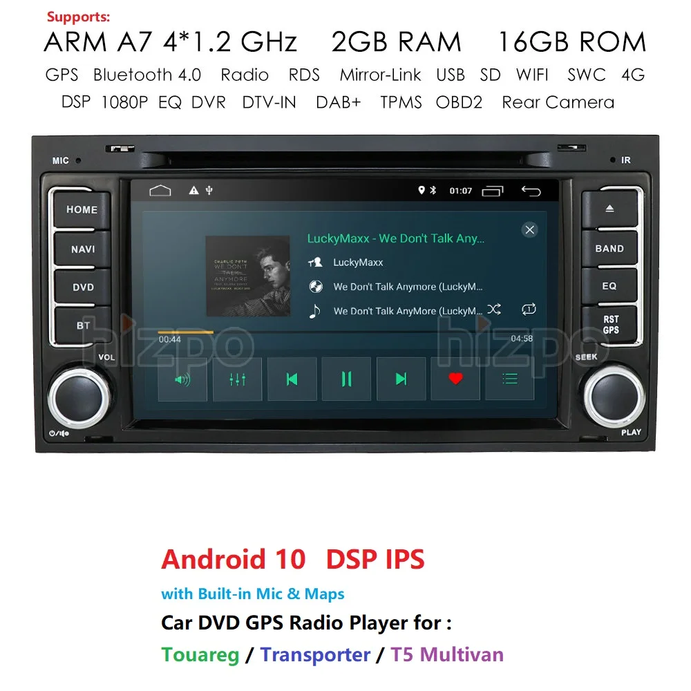 Автомобильный DVD-плеер с сенсорным экраном 7 дюймов HD IPS Android 10 для Touareg T5 Transporter Multivan 2004-2009, радио, аудио, стерео