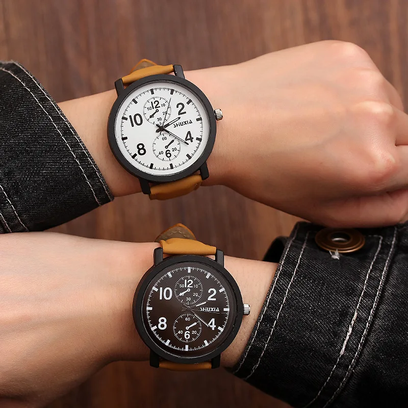 Часы унисекс кварцевые, с большим циферблатом и кожаным ремешком