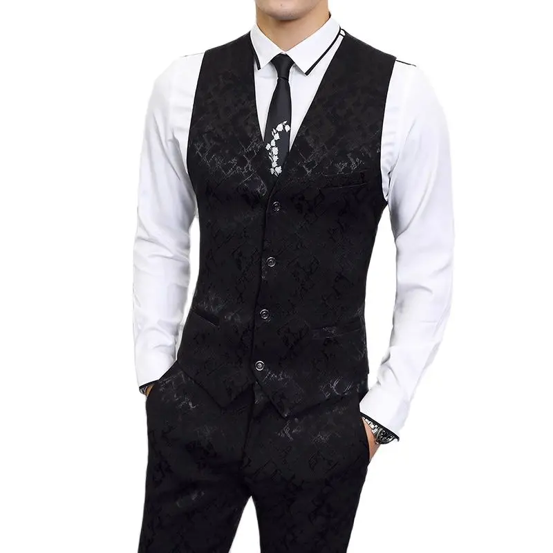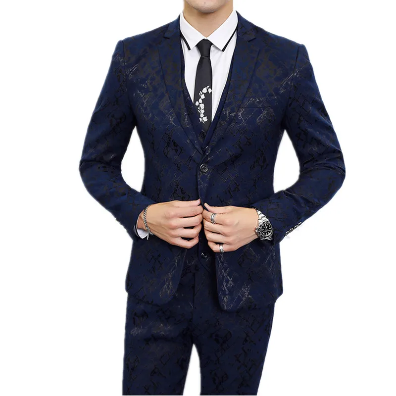 Мужской комплект из 3 предметов (пиджак + брюки + жилет), синий, черный, мужские костюмы большого размера, Свадебный костюм, мужской пиджак, жилет, брюки