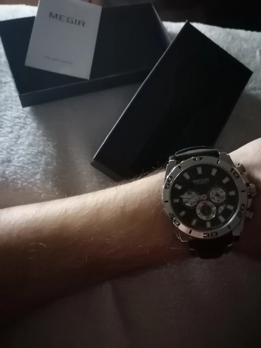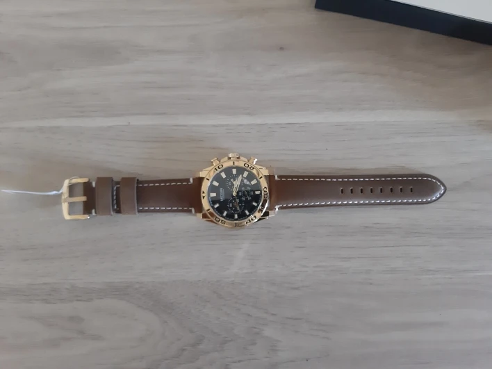 Очень красивые часы, ремешок подходит для большого запястья, отлично работает. Очень доволен. Настоятельно Рекомендуемые часы и продавец. Доставка во Францию в течение 20 дней.