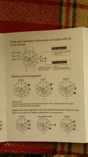 хронограф фейк, стрелки не работают нигде, кроме секундной, кнопки тоже фейк никакой функциональности, блестит как дешевая китайщина, не советую ребята к покупке! просто выкинутые деньги!