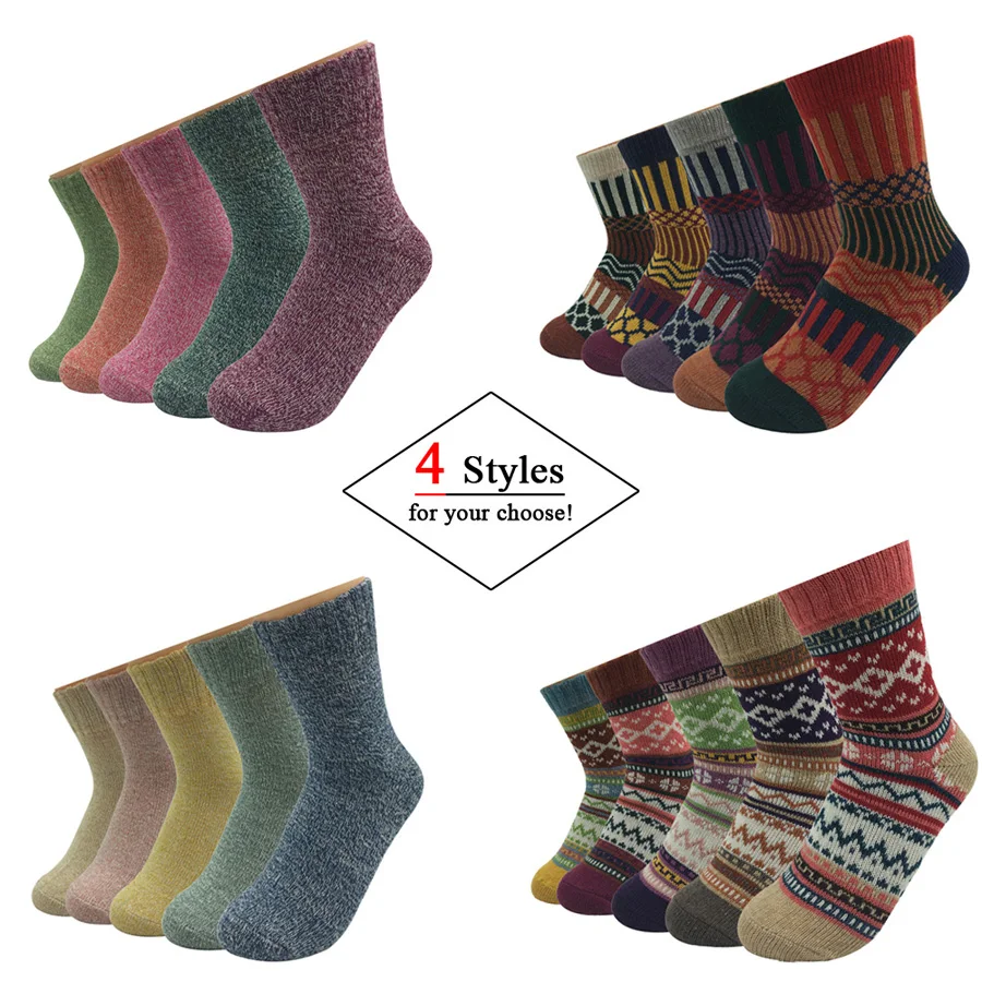 Женские шерстяные носки, 5 парлот, зимние кашемировые теплые носки в японском стиле Харадзюку, рождественский подарок для девочек