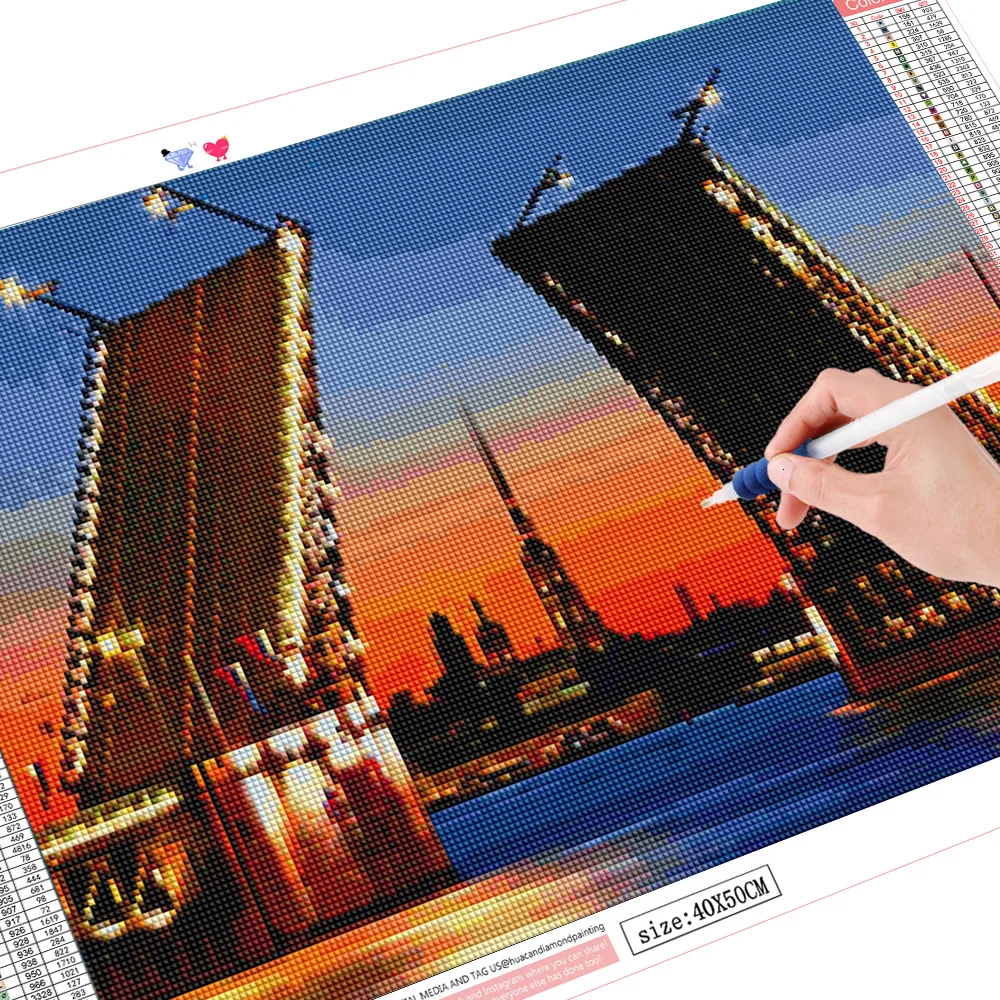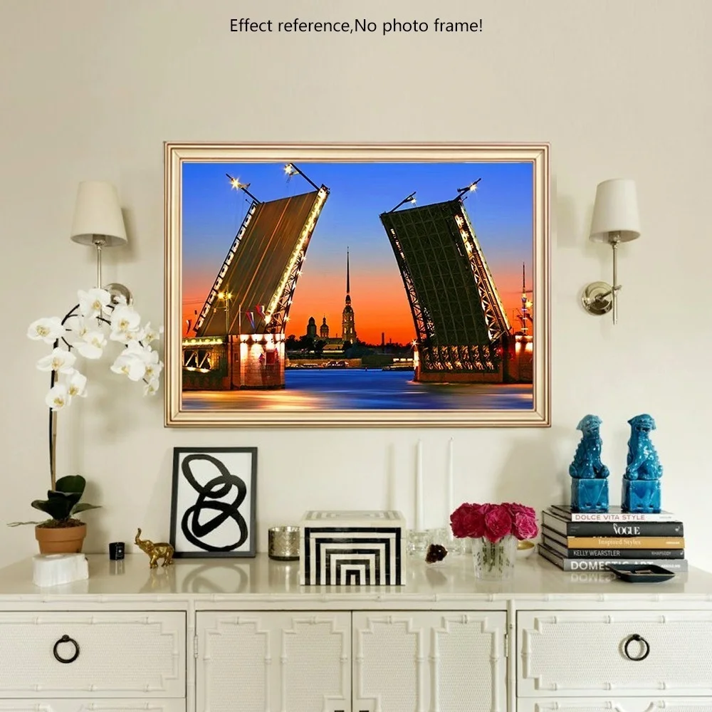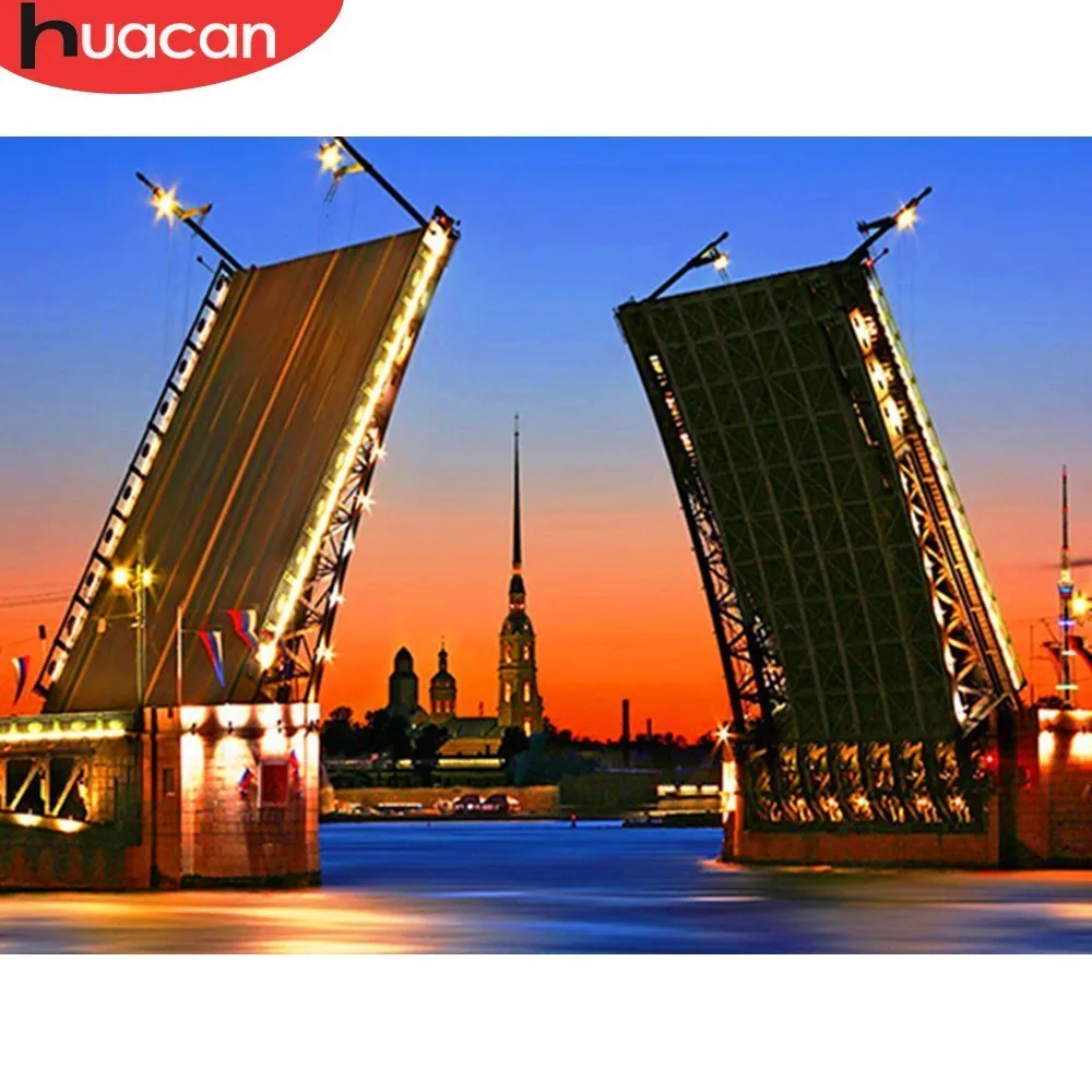 HUACAN 5D Сделай Сам Алмазная картина вышивка пейзаж СПб мост Алмазная мозаика полностью квадратные Стразы Декор домашний подарок