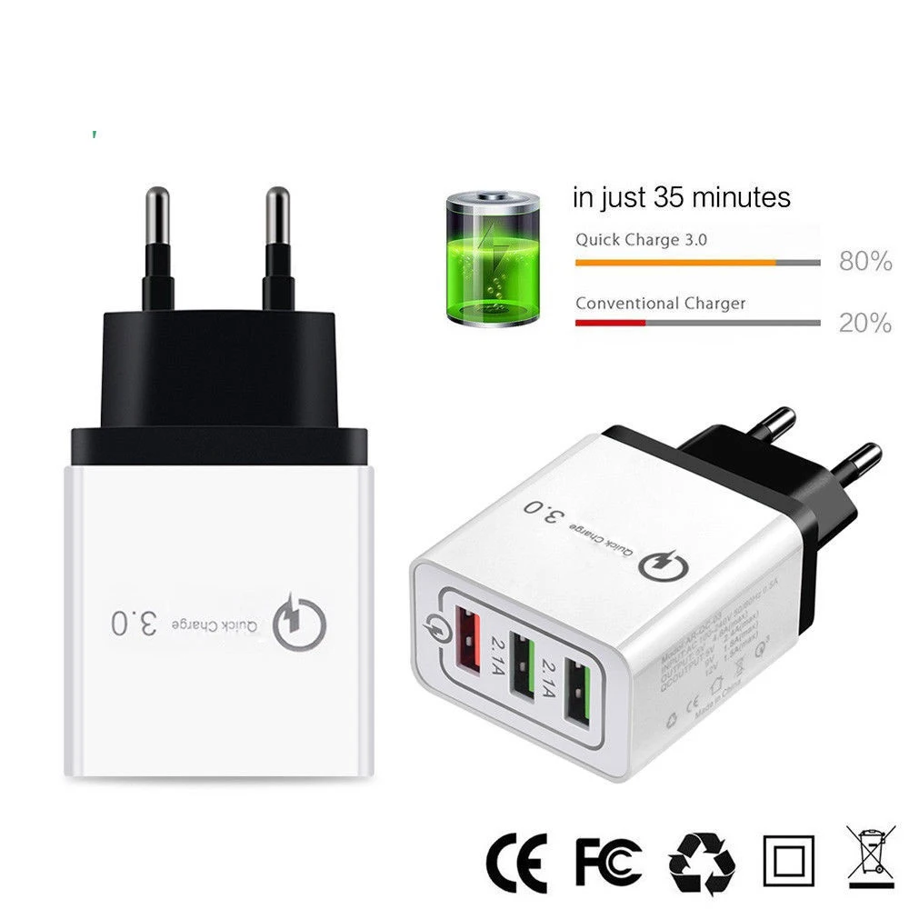 Устройство для быстрой зарядки с 3 портами USB 3,0, адаптер питания для мобильных телефонов iPhoneiPadSamsungXiaomiLGHTC, быстрое дорожное зарядное устройство QC3.0