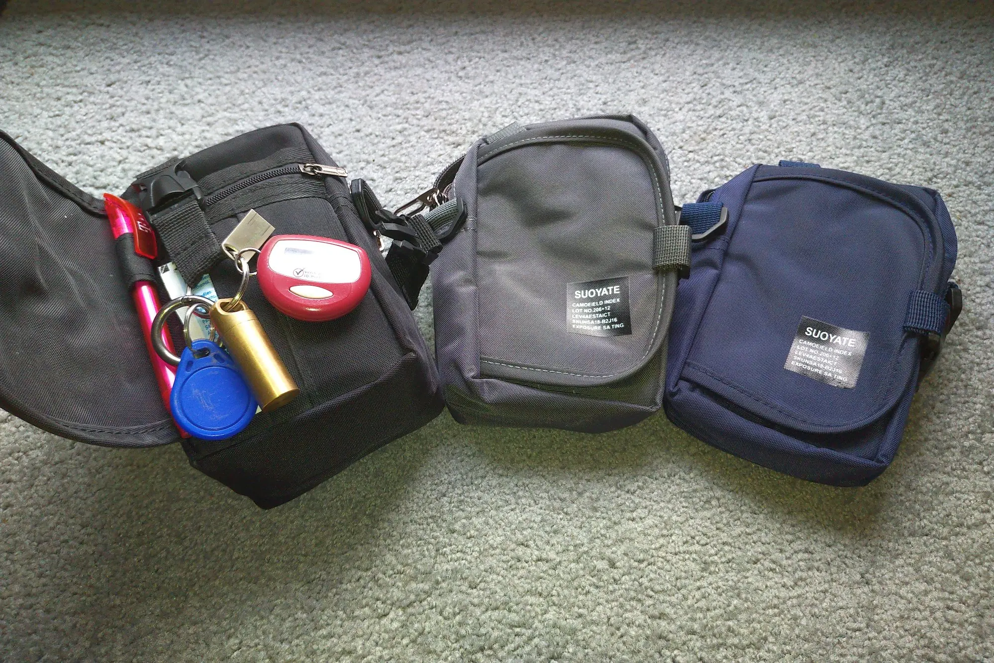 Год назад я заказал одну из этих сумок (в черном цвете), и это так фантастично, что это стало моим ежедневным компаньоном. Каждый раз, когда я выходил из дома, у меня было это со мной, и раз, когда я забывал важные вещи, ушло. Больше нет узких курток или брюк с карманами, теперь все в этой сумке: ключи, наличные, визитные и кредитные карты, почтовый штамп, много инструментов, запасная маска короны (в случае, если я снова забуду главный), салфетки для дезинфекции, ручка, USB палочка, несколько маркеров, И некоторые другие вещи. Качество сумки отличное, и я рекомендую его всем, кто ищет маленькую сумку для личных вещей. Я заказал еще два в разных цветах для резервного копирования. Время доставки было гораздо быстрее, чем ожидалось (я ожидал некоторые задержки из-за вируса короны). Я буду заказывать у этого дилера в любое время! К слову, уродливые наклейки легко снимаются, все, что вам нужно-это некоторое время, немного терпения и ноготь. :)