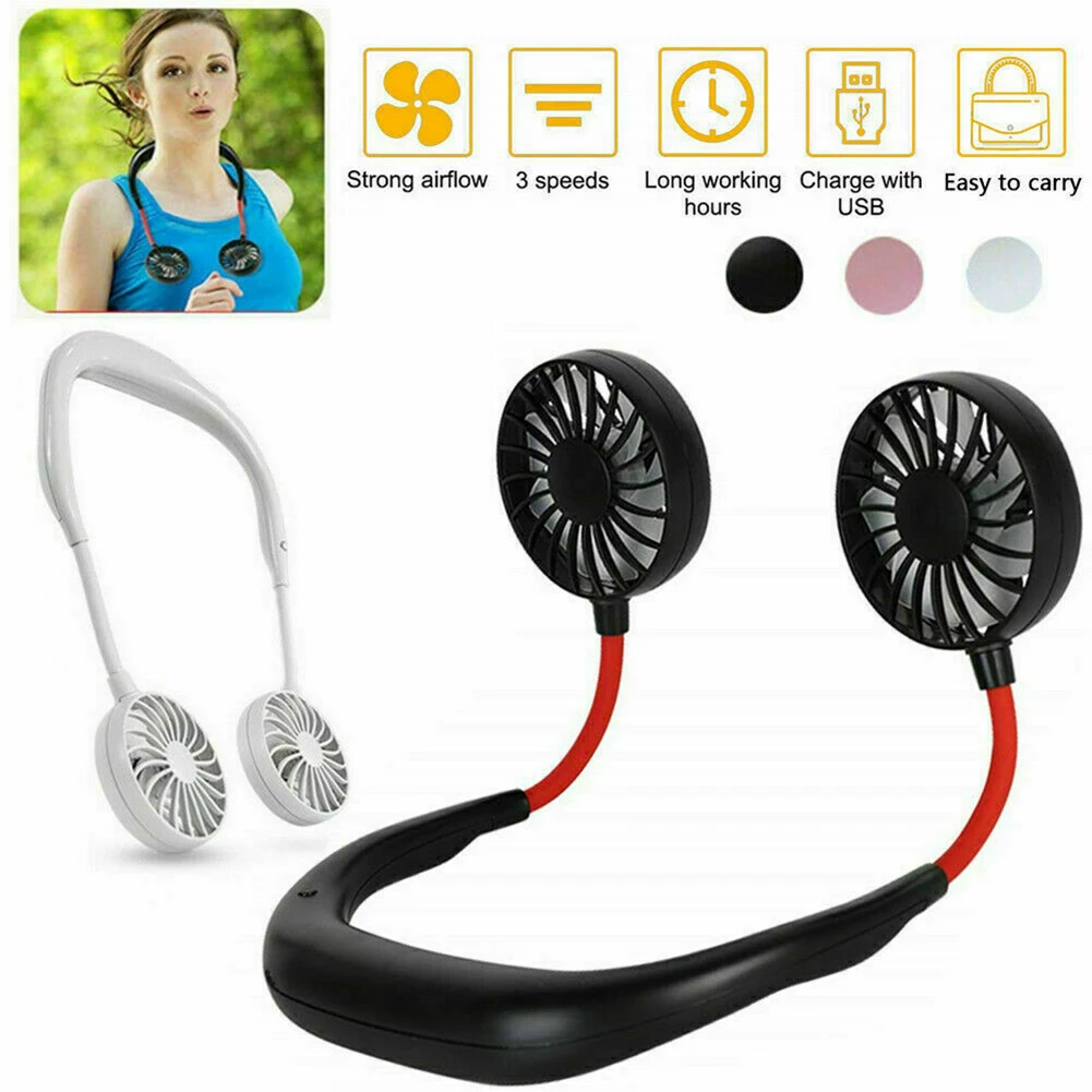 Features: - 2-6 hours working time depends on different mode. - The small personal fan is compatible with most computers, laptops, portable chargers and other devices with USB output. - You can hang the fan around your neck and take it everywhere, will not feel tired or uncomfortable.Say goodbye to hot flashes, sweating, and flushing. - This wearable neckband USB Fan is available with Low / Medium / High speed levels to meet your individual needs.In addition, this cooling fan features with LED lights, it's very cool at night. - It features double heads design, and two fans can 360°flexible rotate, which allow you to adjust the best wind direction. Also you can use it on your desk or in your living room,used as a desk fan or a neck fan. - This innovative necklace fan is designed to be worn around the neck so your hands remain free.It's a perfect idea for personal cooling, camping, outdoor event, such as soccer and baseball, camping, climbing, fishing, golf, festival, makeup, etc. Specifications: Material: ABS Package included: 1 x Fan 1 x Charging Cable Notes: 1. Manual measuring, please allow 1 ~ 3mm error,thank you. 2. Due to the difference between different monitors, the picture may not reflect the actual color of the item. We guarantee the style is the same as shown in the picture.
