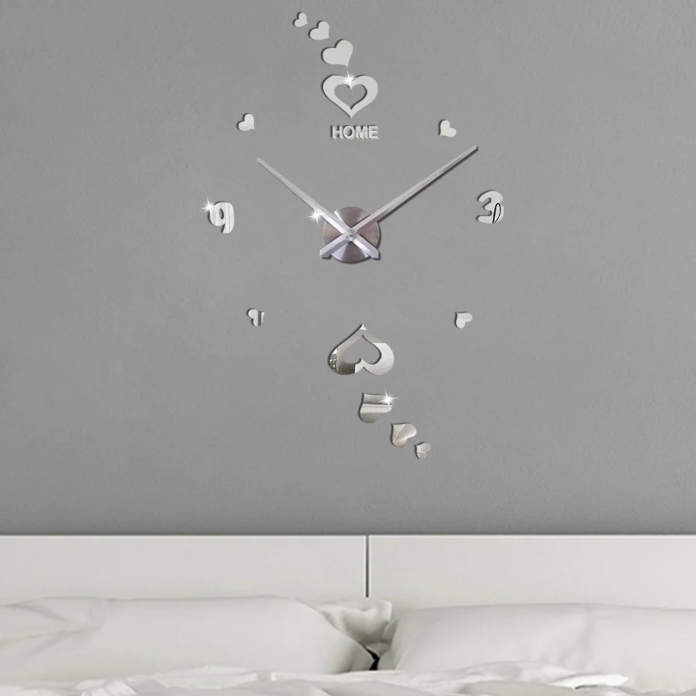 Любовь сердца цифровые настенные часы кварцевые кухня большие часы украшения в виде зеркальных наклеек 3D большие настенные часы Домашние английские буквы подарок