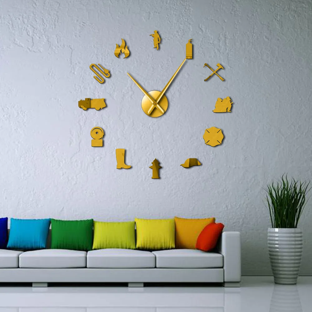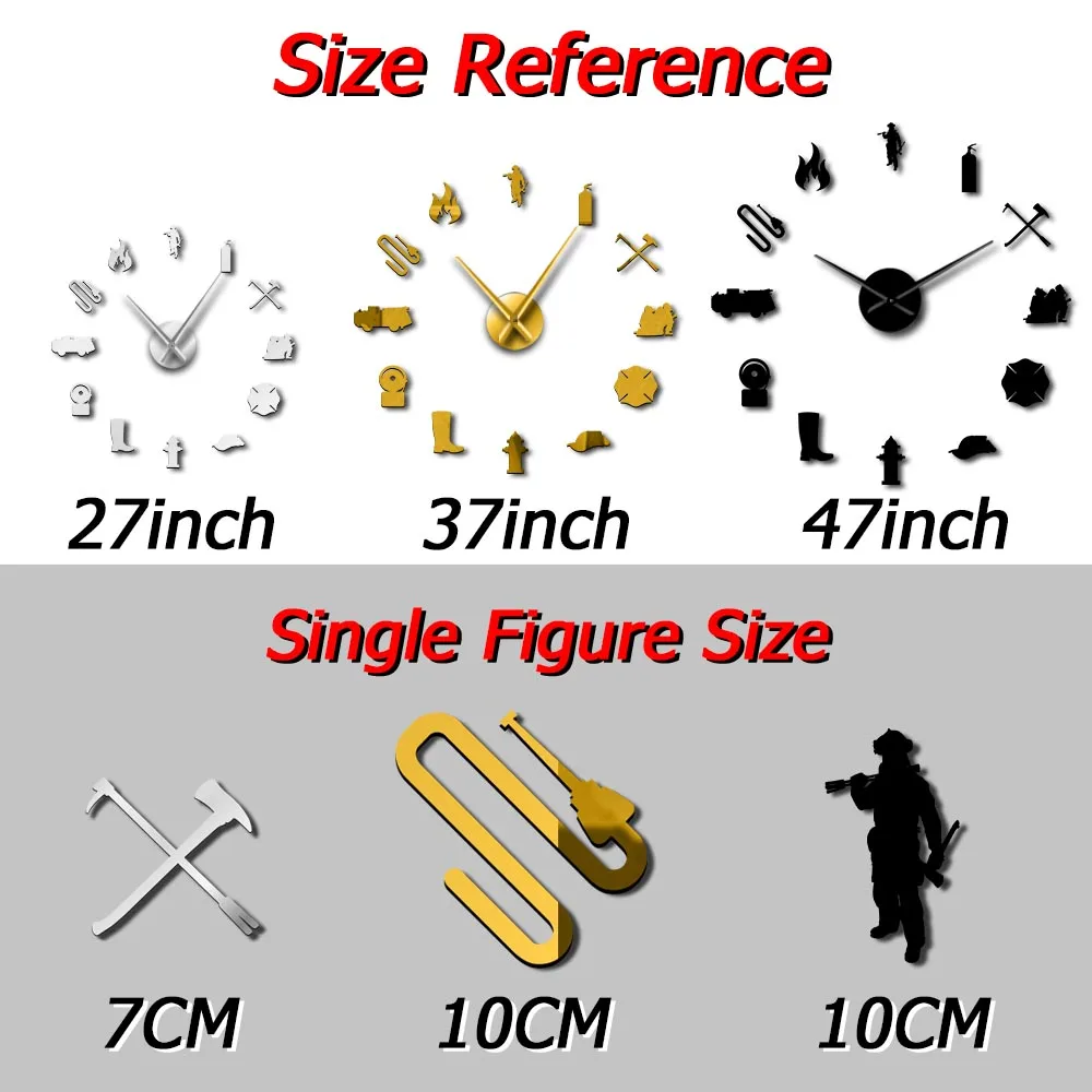 Гигантские профессиональные 3D настенные часы сделай сам, пожарный, Настенный декор, часы, часы, подарок для Него, регулируемый размер, комплект украшений