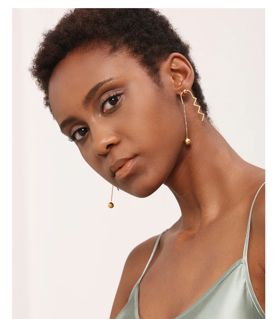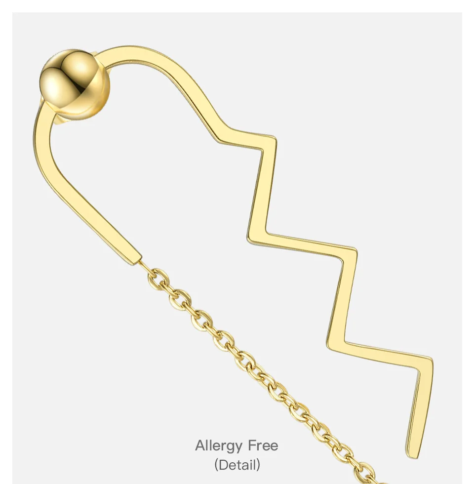 Женские серьги-гвоздики с-образной цепочкой, золотого цвета