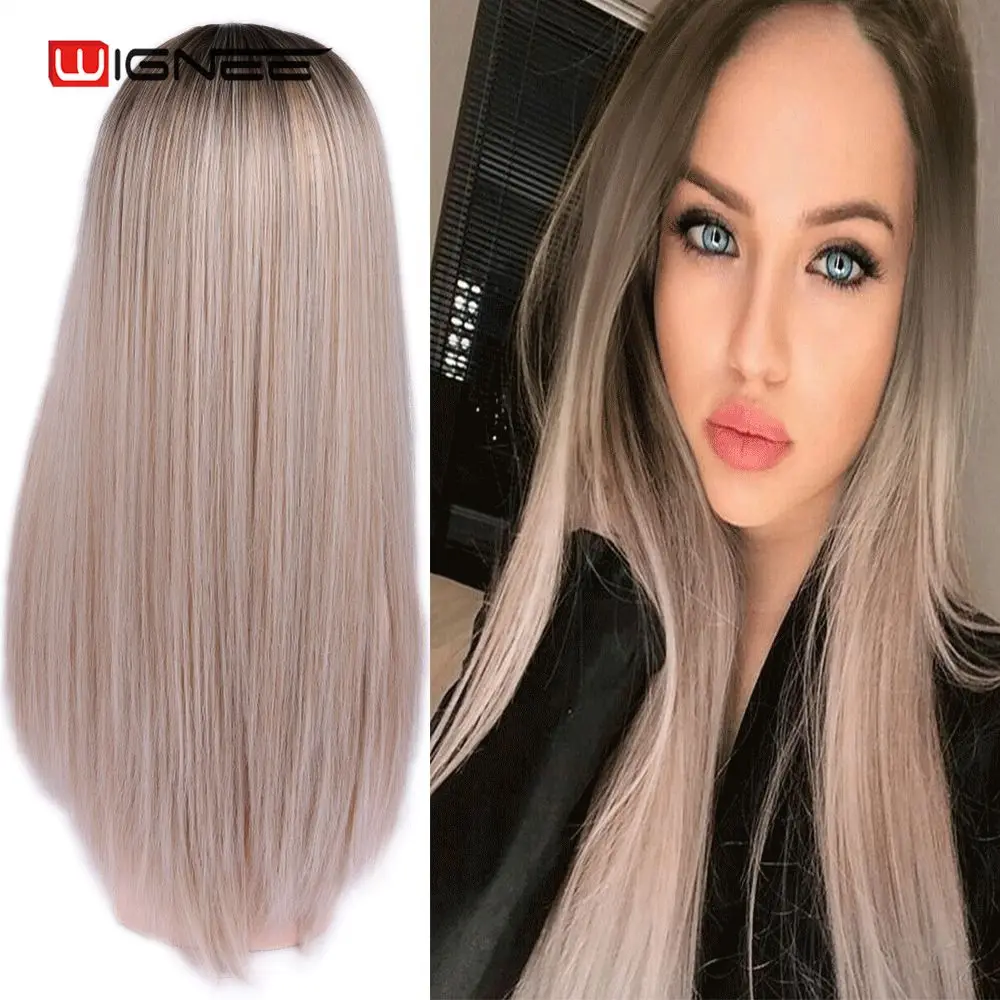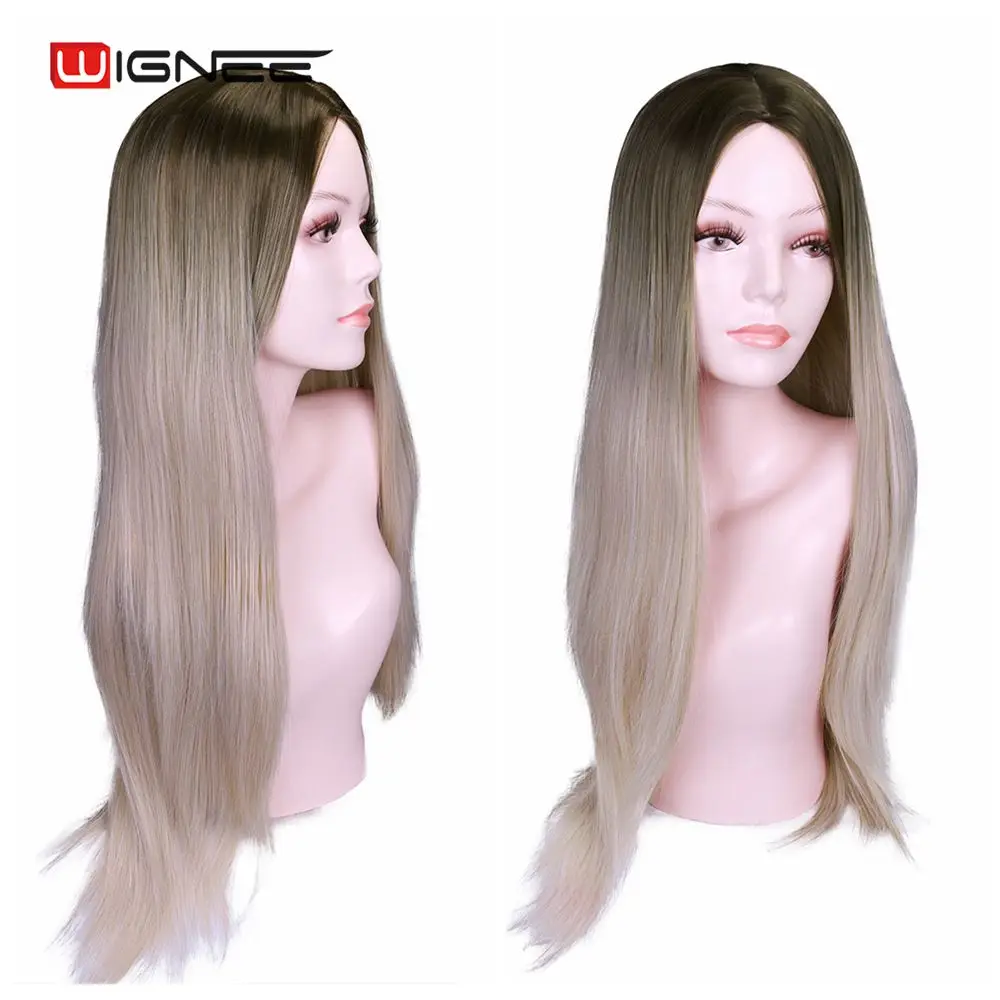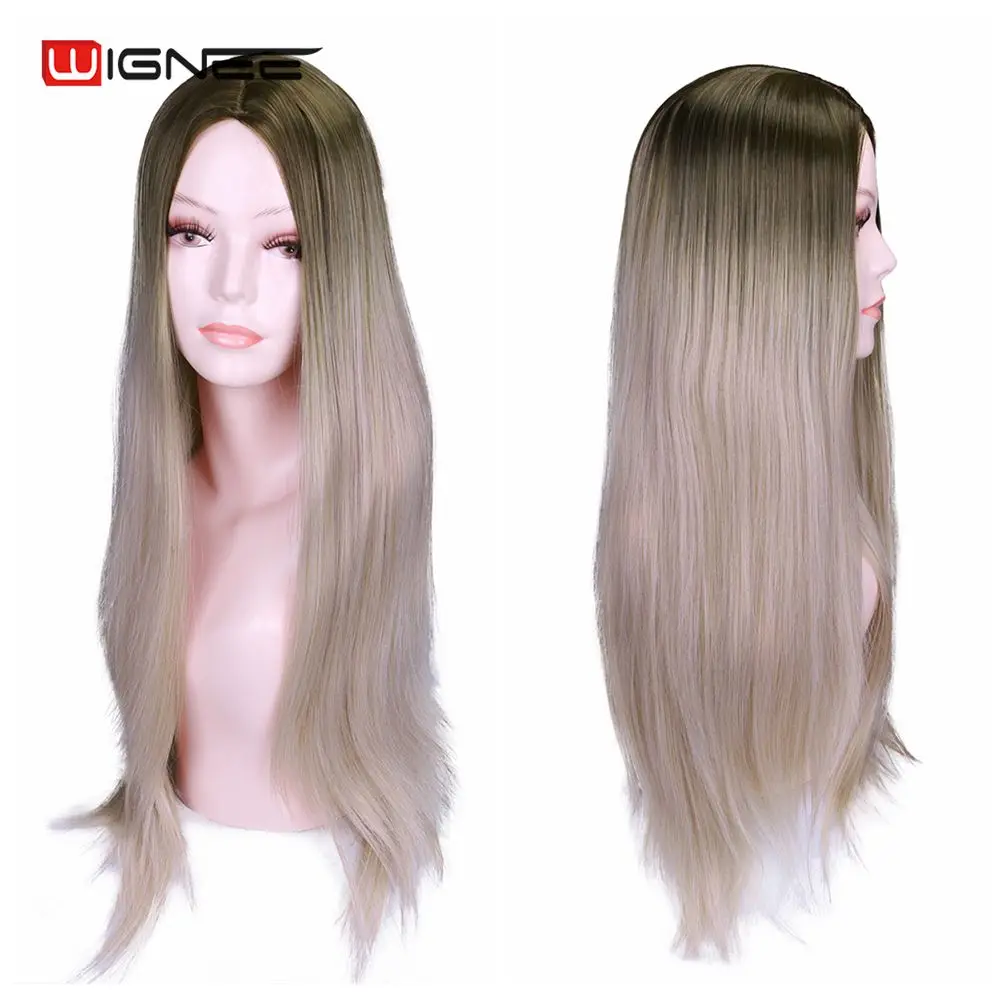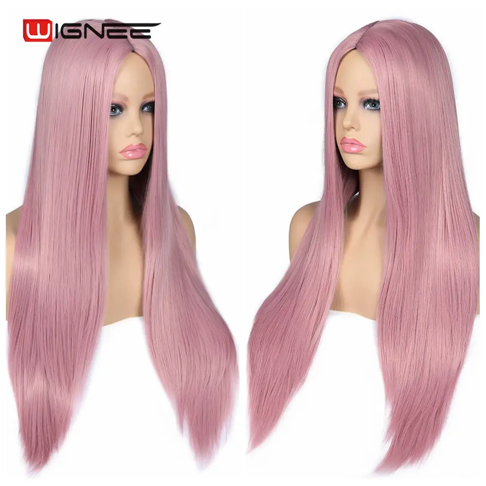 Wignee, длинный синтетический парик, прямые волосы, средняя часть, для женщин, пепельный блонд, розовый, красный, коричневый, синий, натуральный парик для женщин