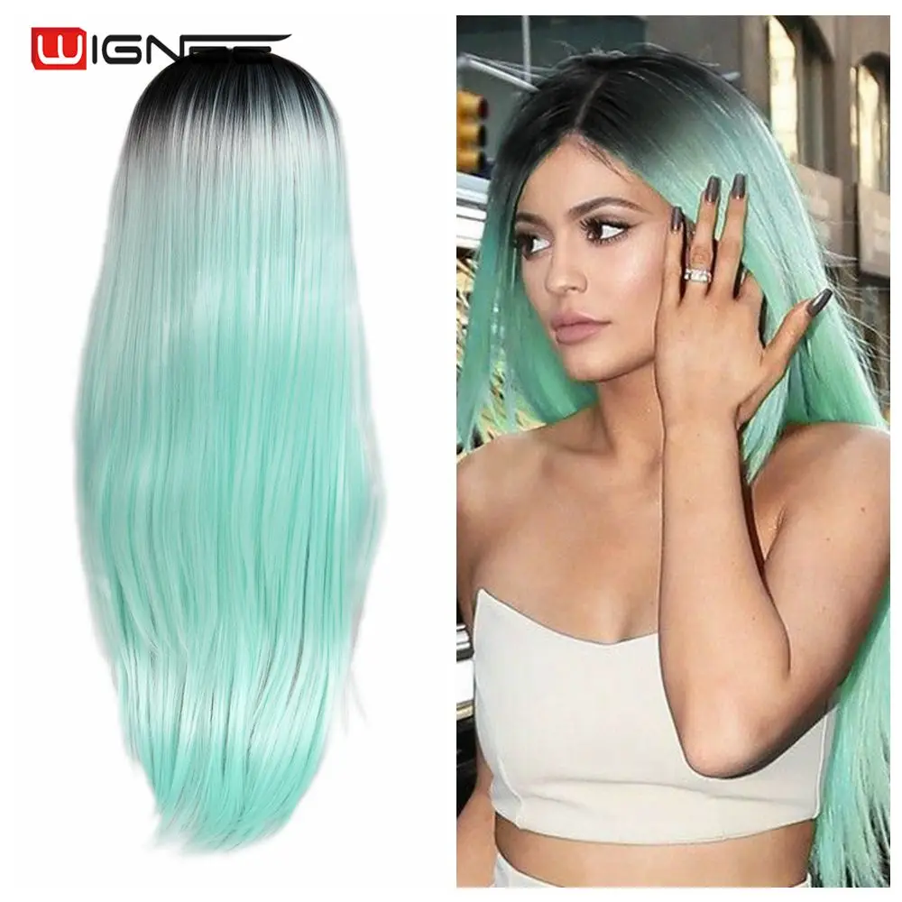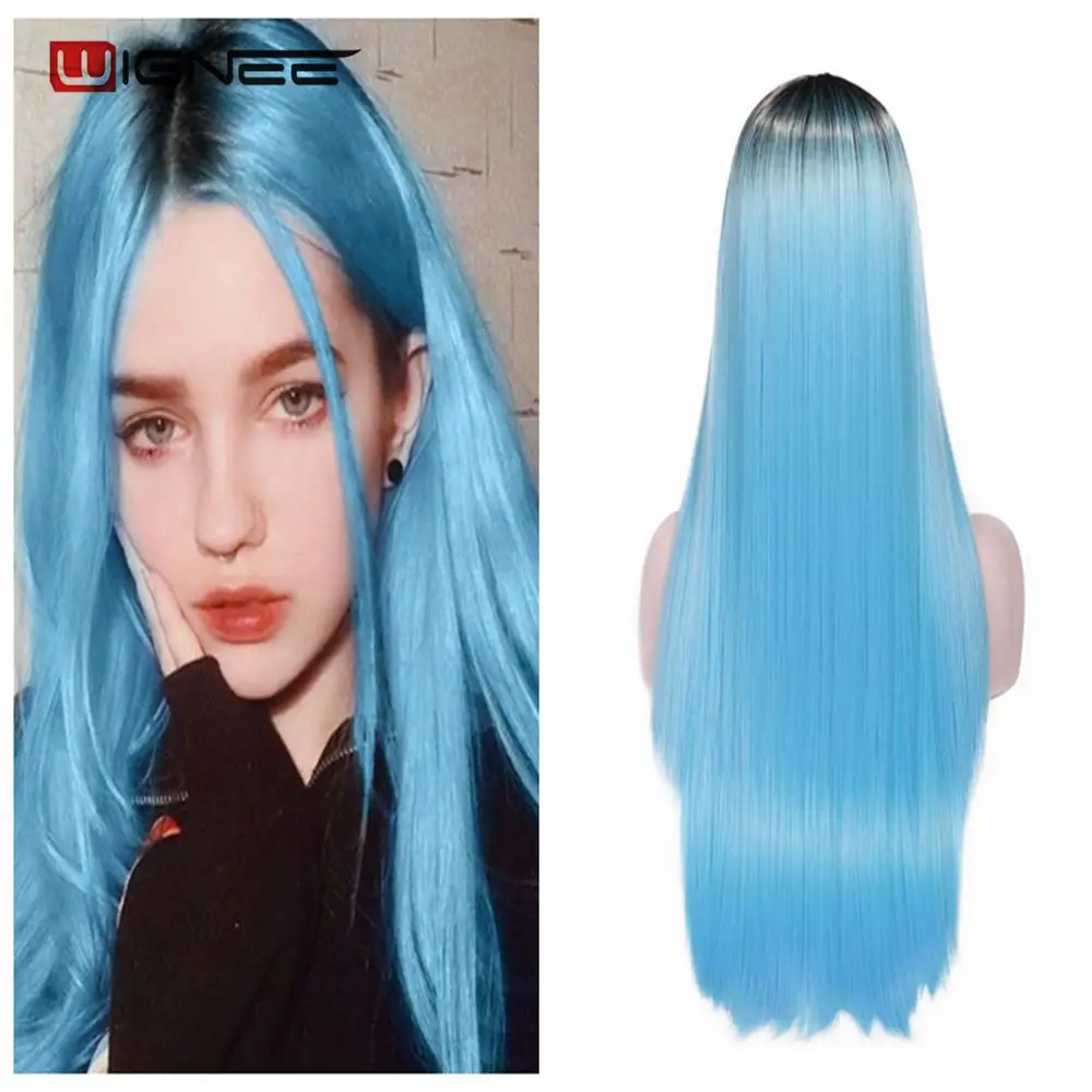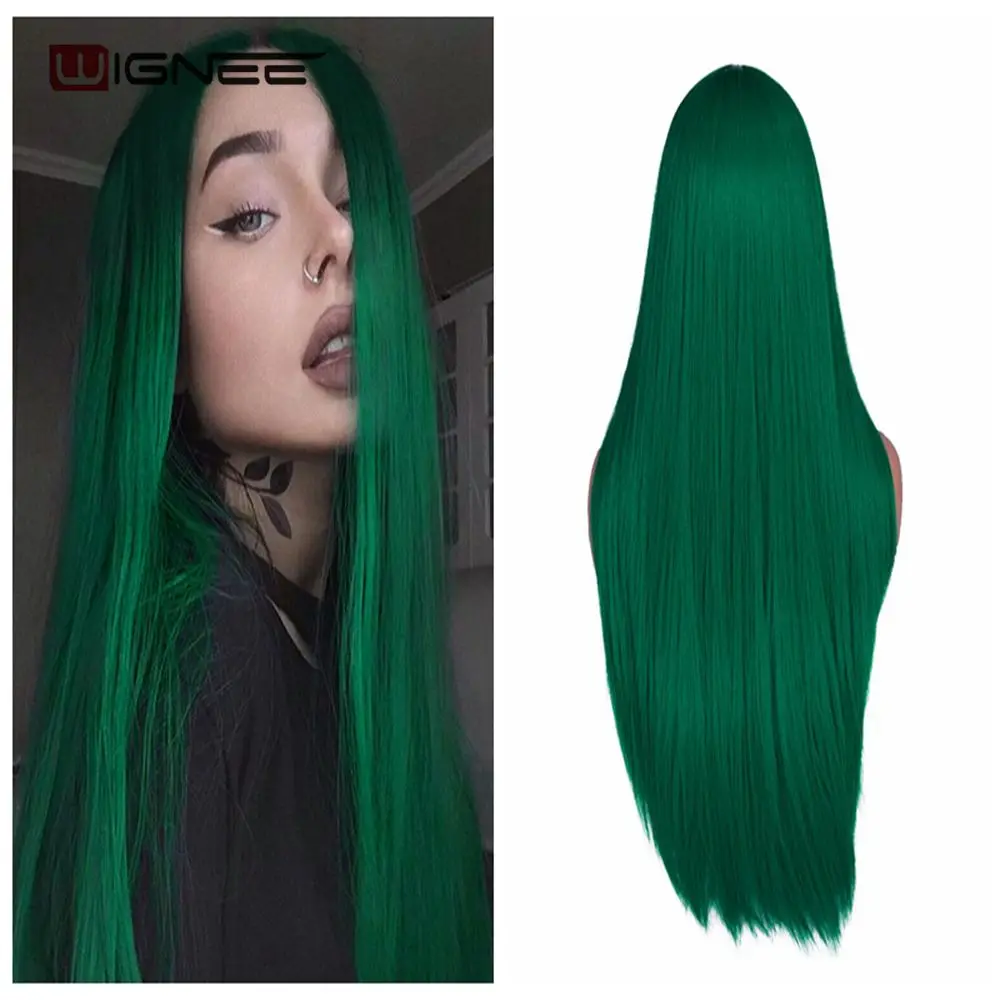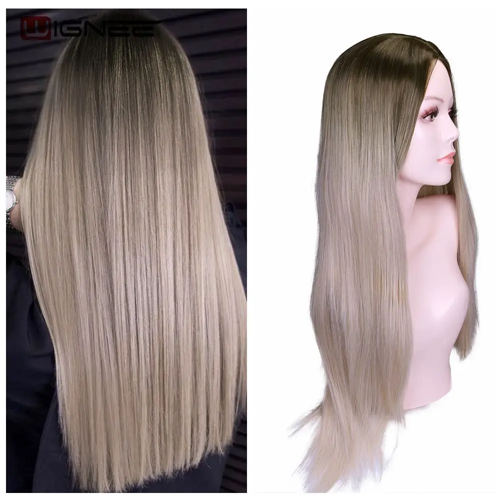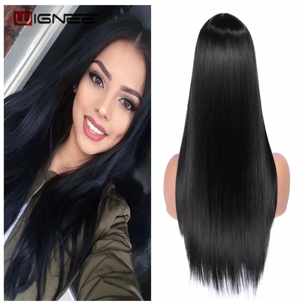 Wignee, длинный синтетический парик, прямые волосы, средняя часть, для женщин, пепельный блонд, розовый, красный, коричневый, синий, натуральный парик для женщин