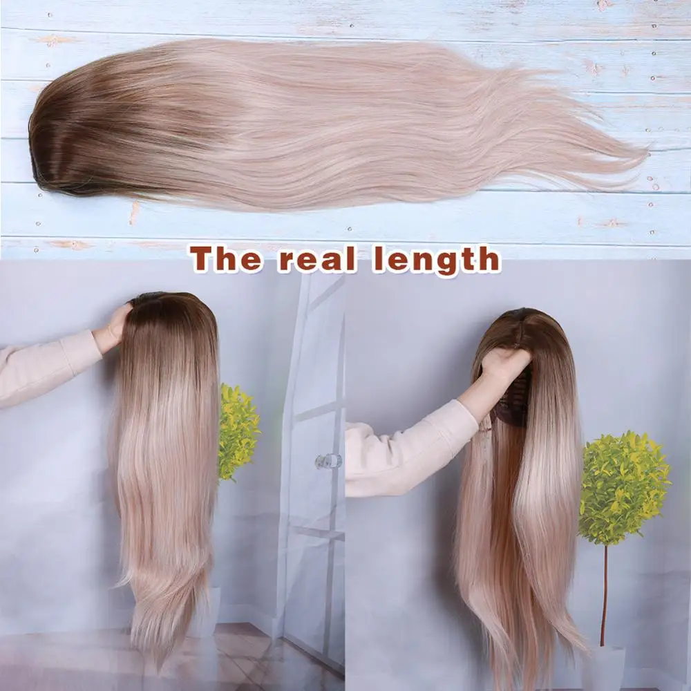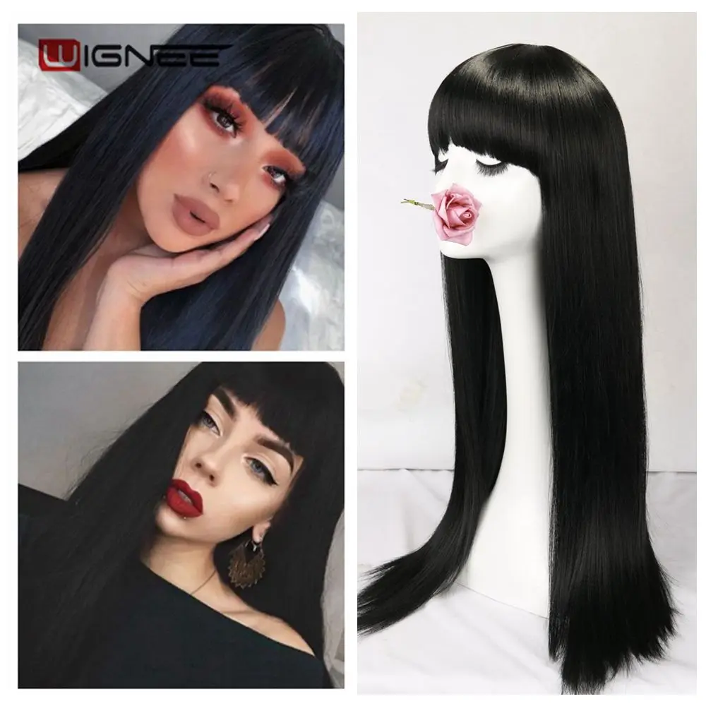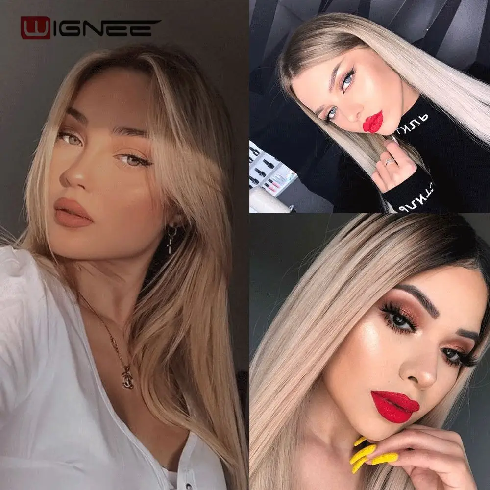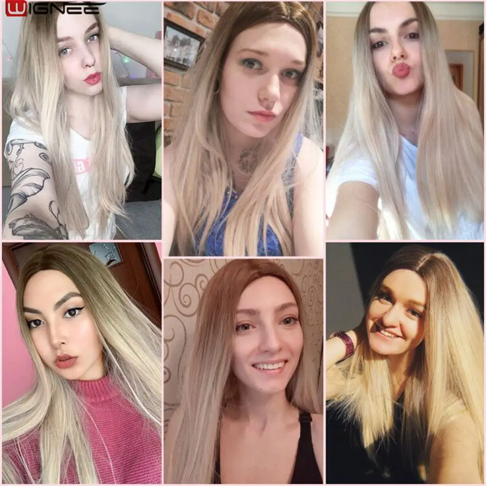 Wignee, длинный синтетический парик, прямые волосы, средняя часть, для женщин, пепельный блонд, розовый, красный, коричневый, синий, натуральный парик для женщин