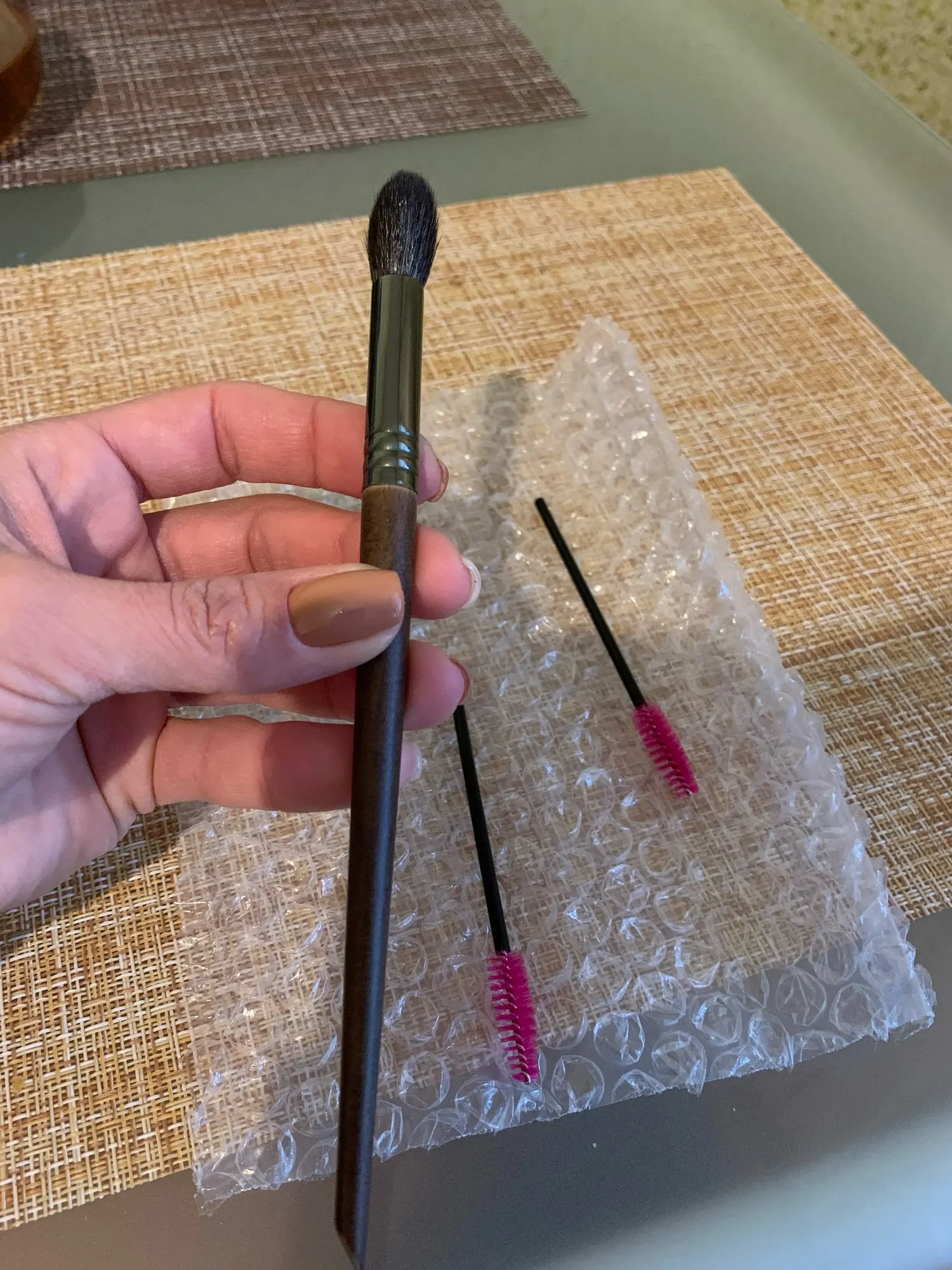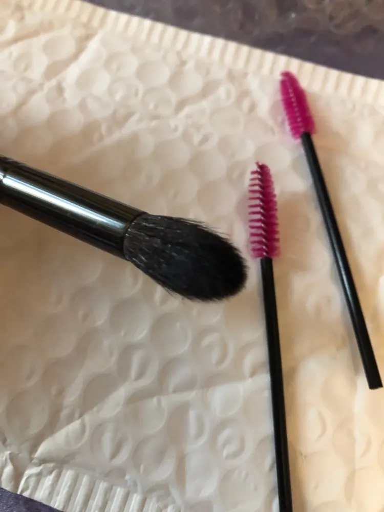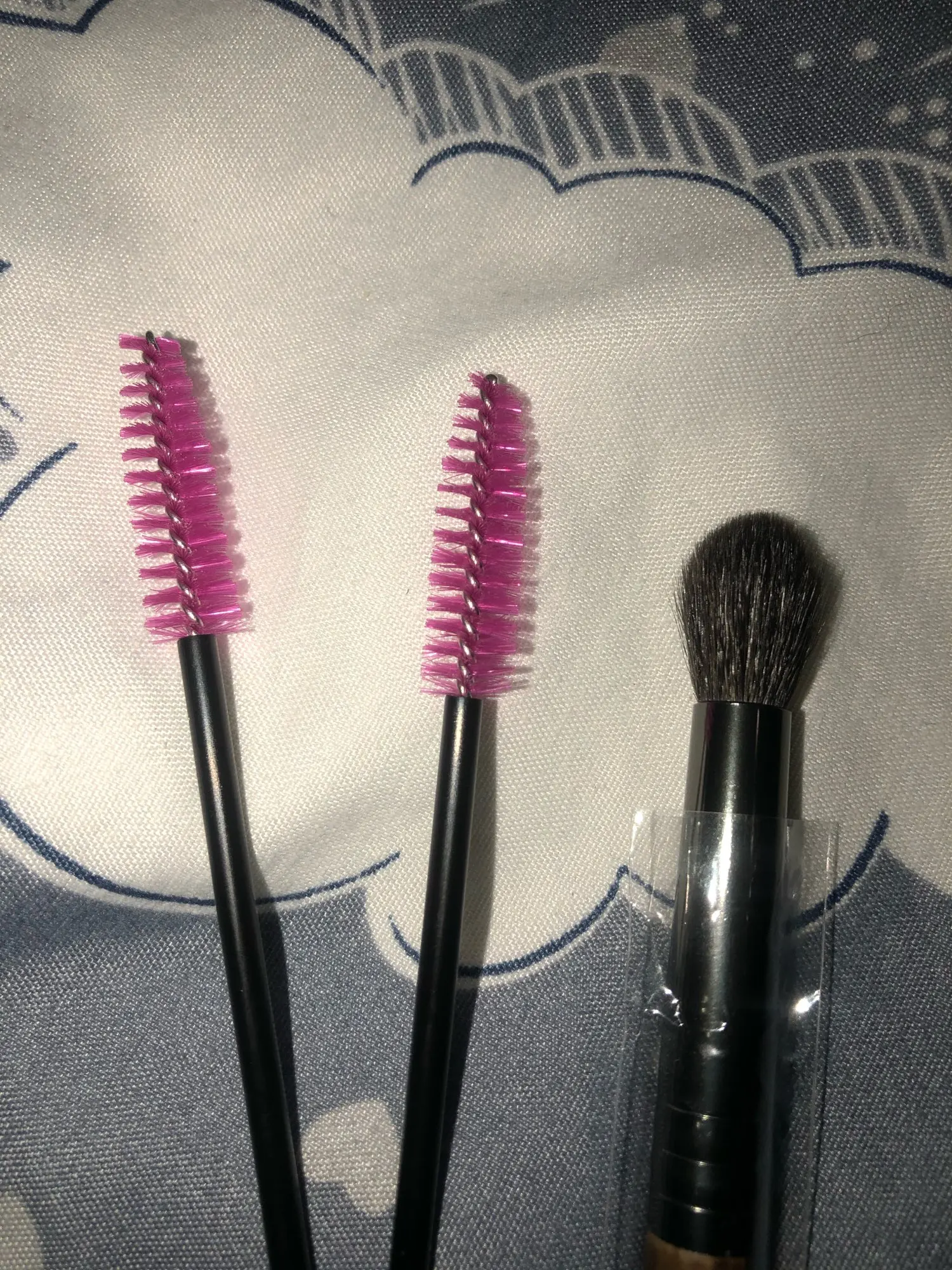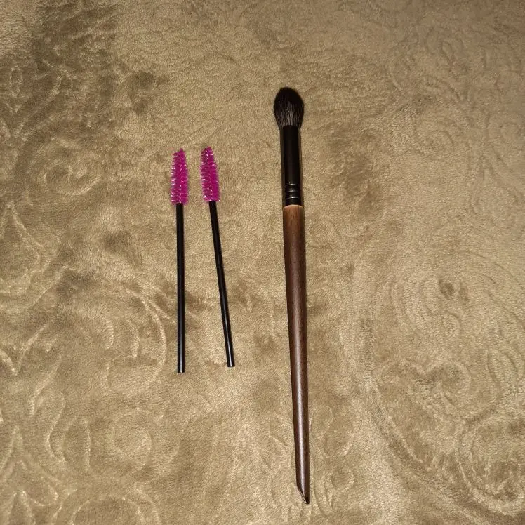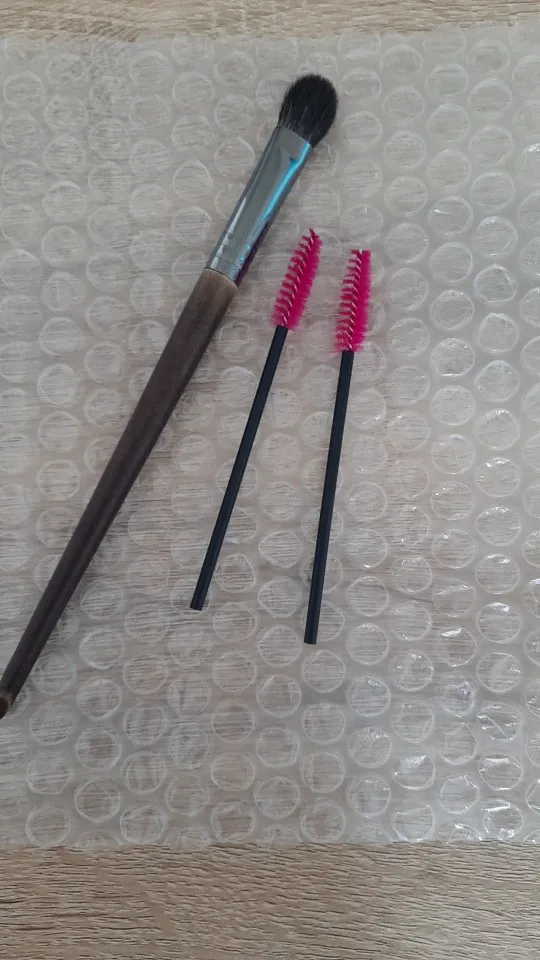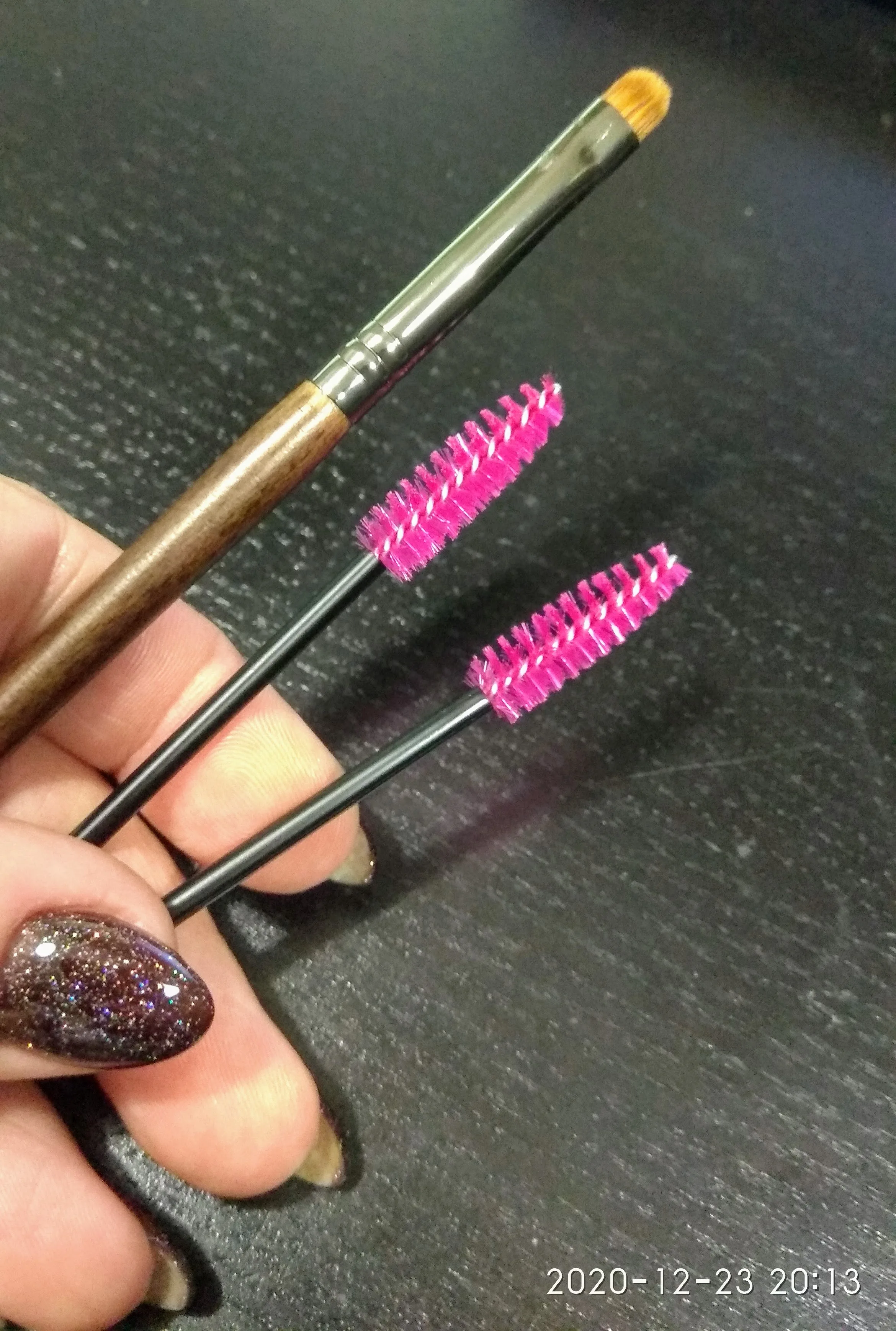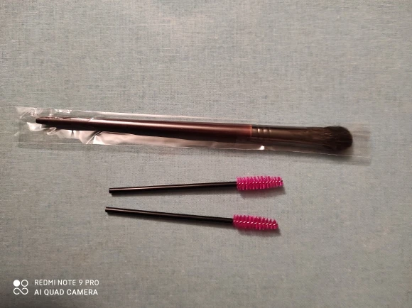 Очень хорошая кисточка, мягкая. Маленькая, для нижнего века. Ещё и 2 щеточки для бровей в подарок.