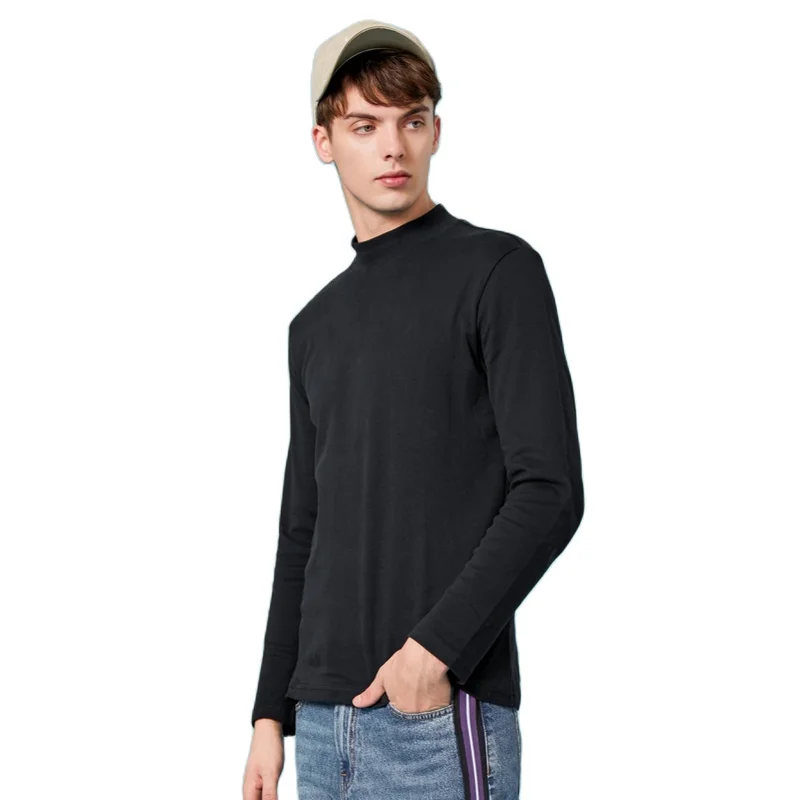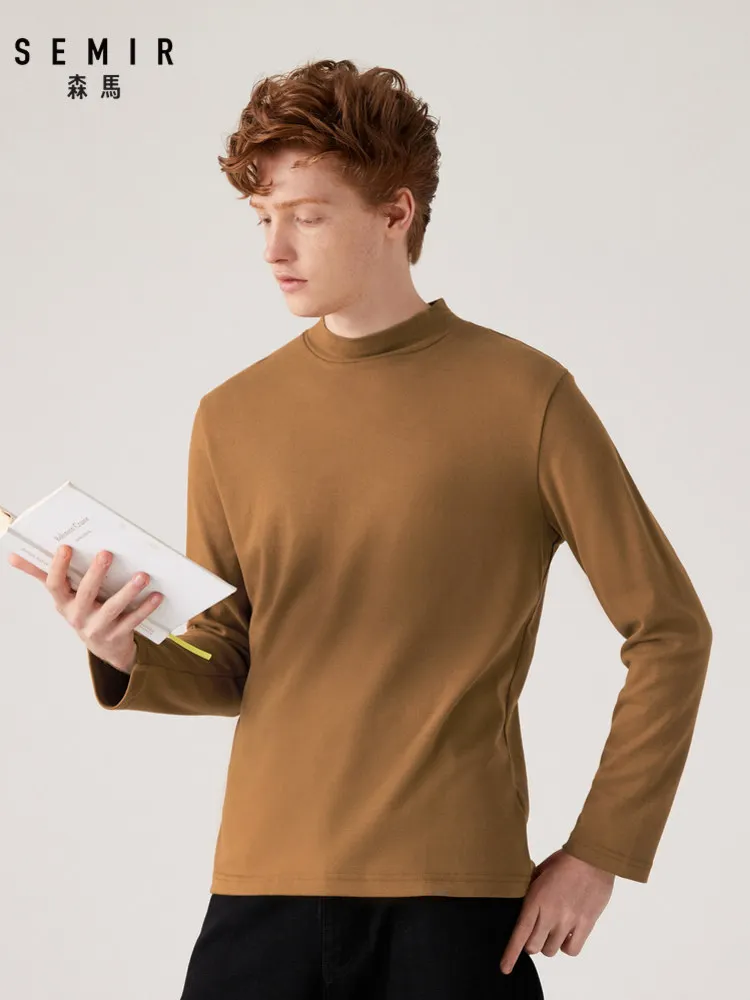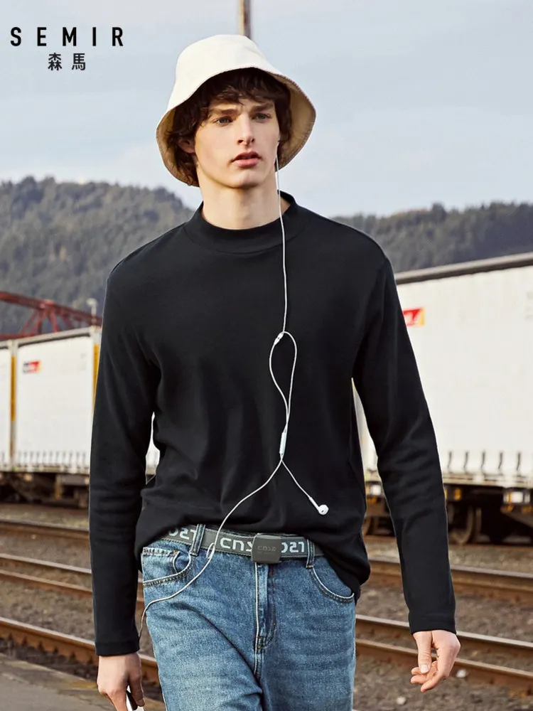 Футболка SEMIR Мужская классическая из 100% хлопка, водолазка с длинными рукавами, Классическая однотонная рубашка с ложным воротником