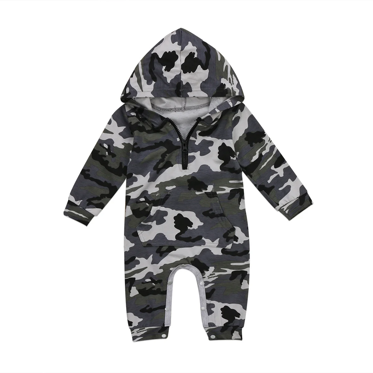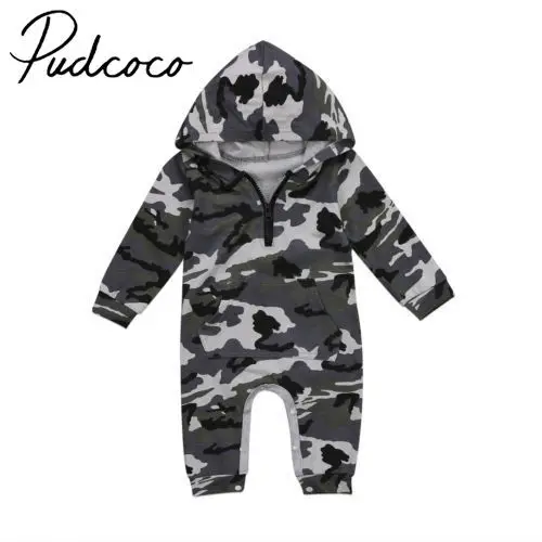 Детский комбинезон на молнии Pudcoco, камуфляжный комбинезон для но...