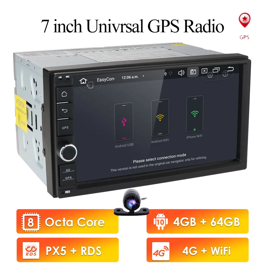 Автомобильный радиоприемник 2 Din, 7 дюймов, Восьмиядерный процессор, универсальная камера Android 10,0, 4 Гб, стерео, GPS-навигация, WiFi, сенсорный экран 1024*600, автомобильный ПК, DAB + SWC