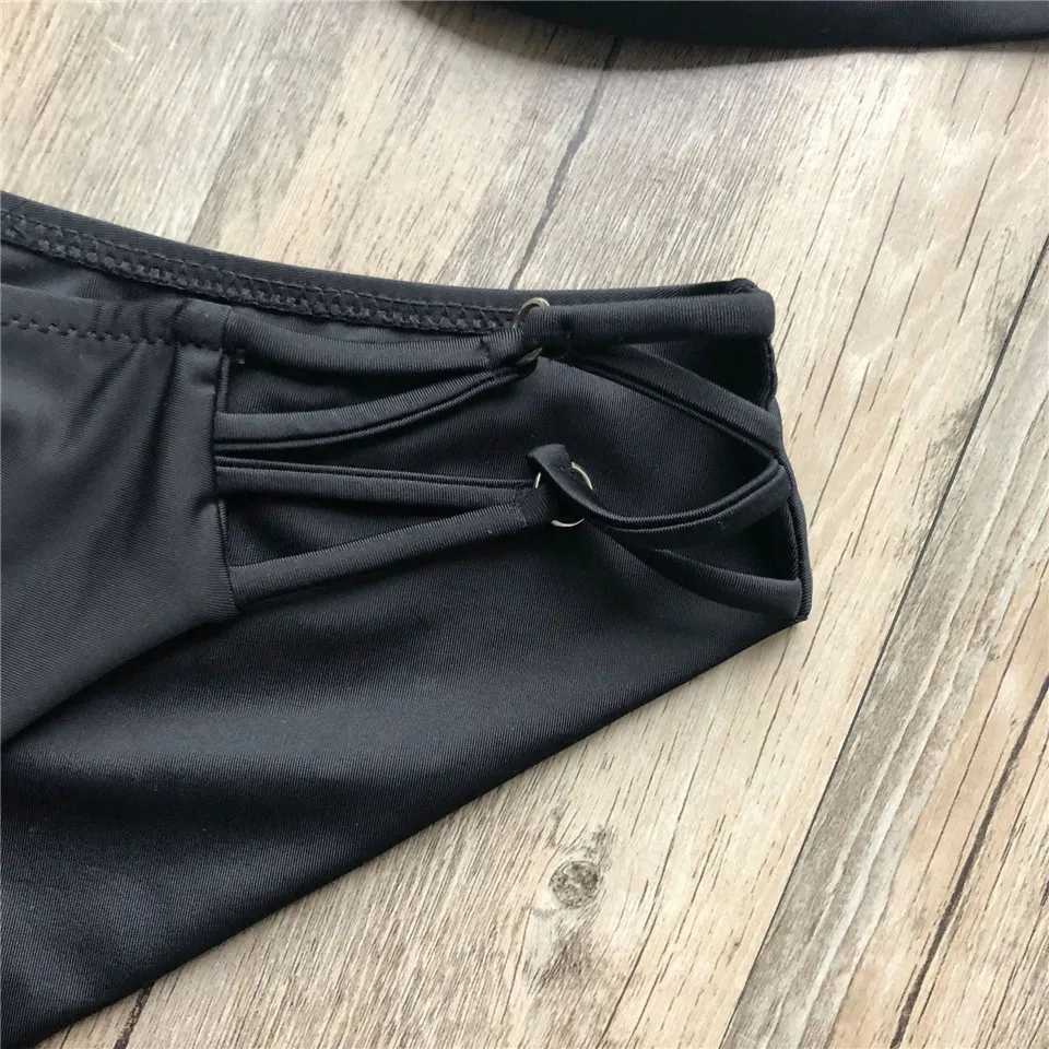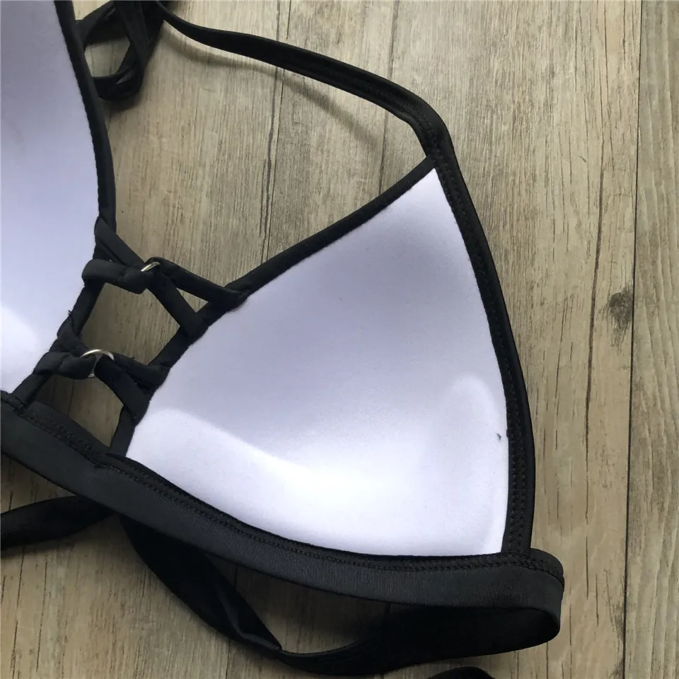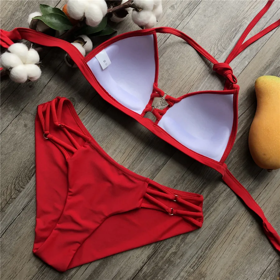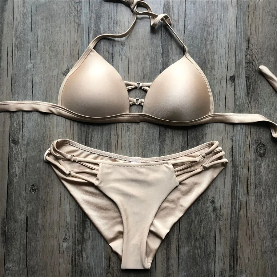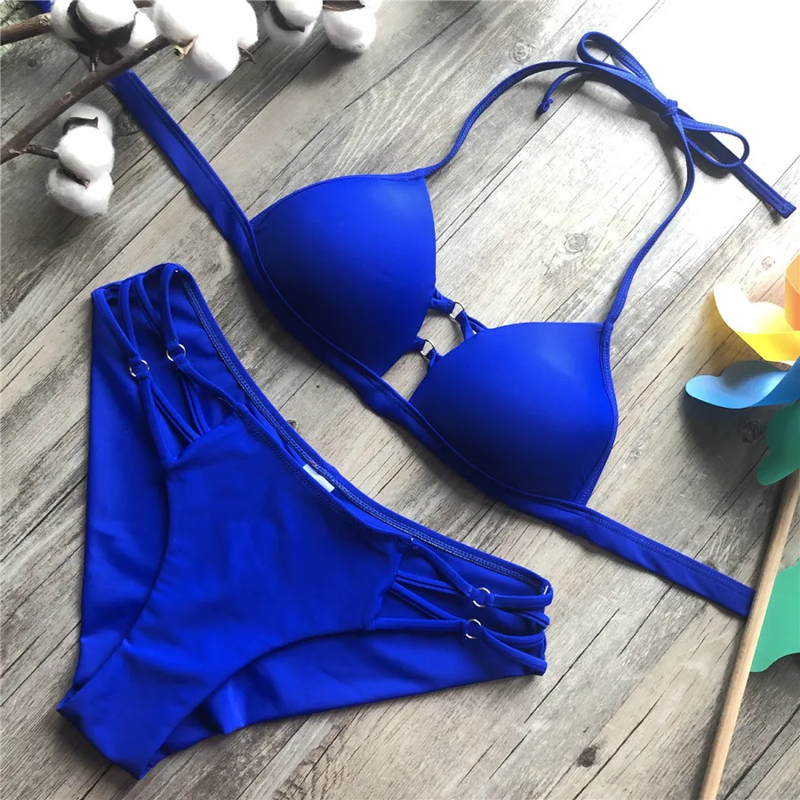 Сексуальный комплект бикини на бретелях 2019, купальник с лямкой на шее, купальный костюм с открытой спиной, однотонное черное бикини, Бразильское бикини, купальник пуш-ап для женщин