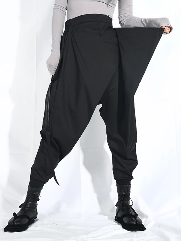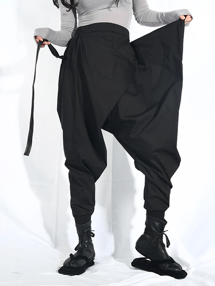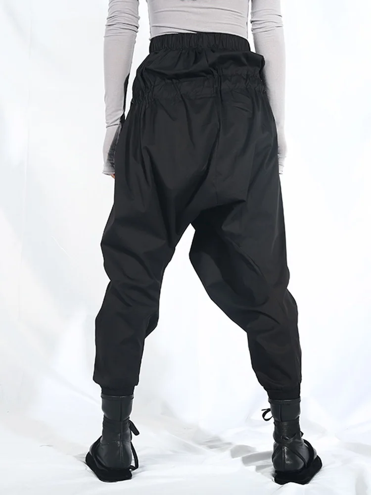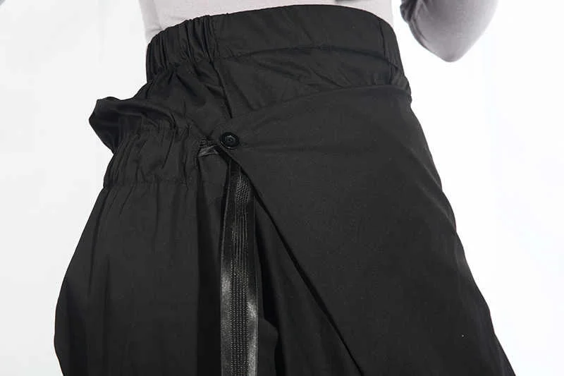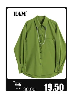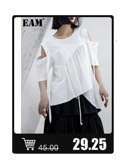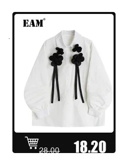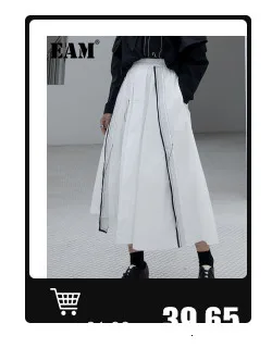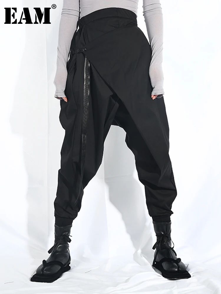 EAM Новинка 2022 года; Сезон весна-осень; Свободные шаровары с высокой эластичной талией и черной лентой; Модные женские брюки; LA98