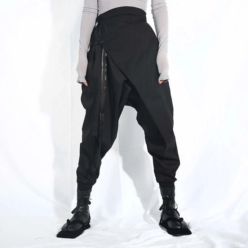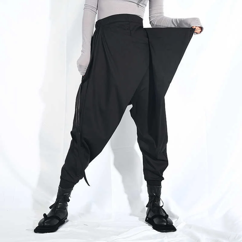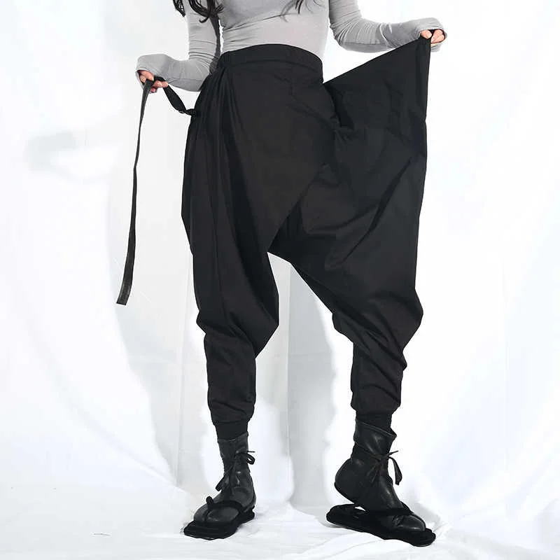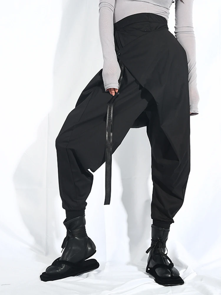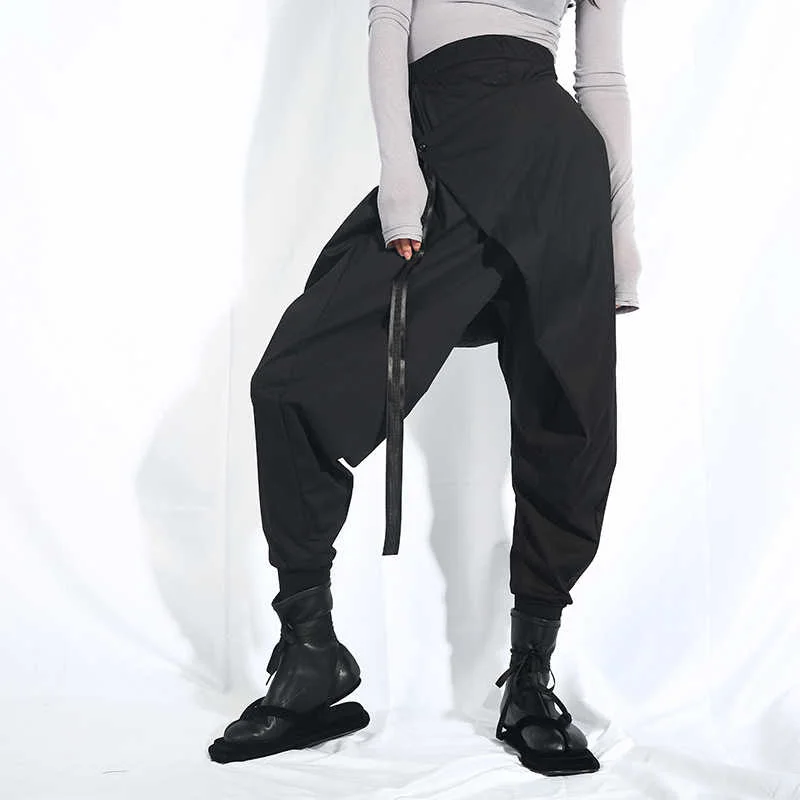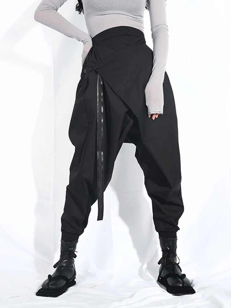 EAM Новинка 2022 года; Сезон весна-осень; Свободные шаровары с высокой эластичной талией и черной лентой; Модные женские брюки; LA98