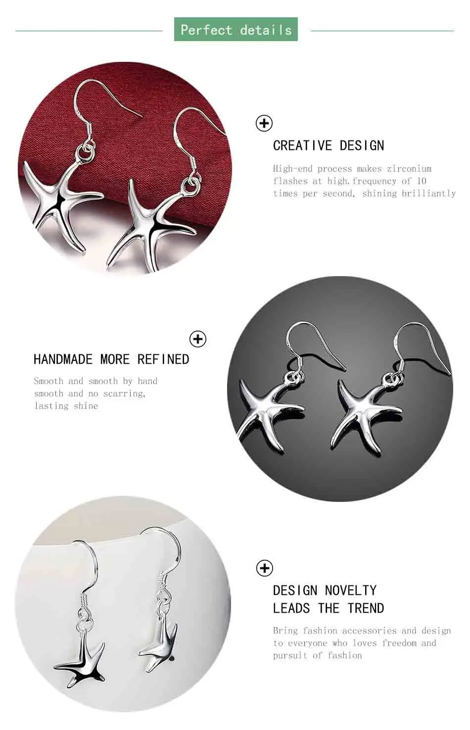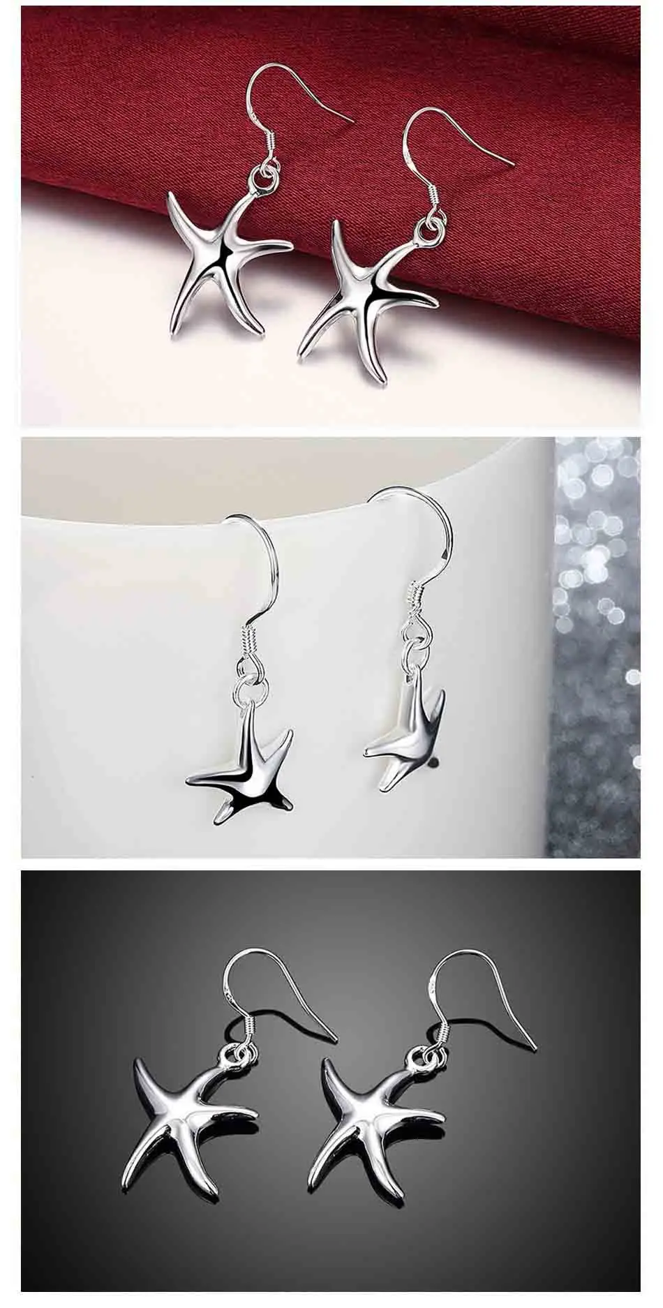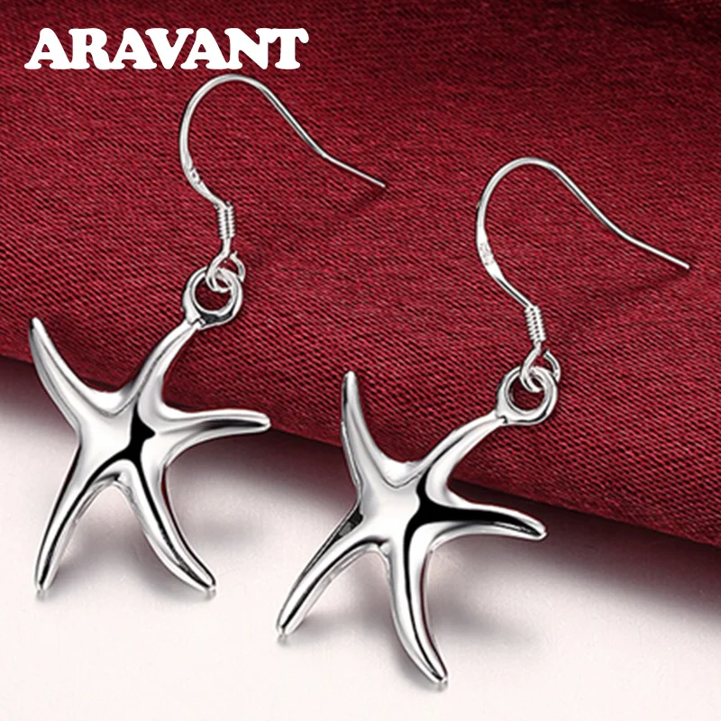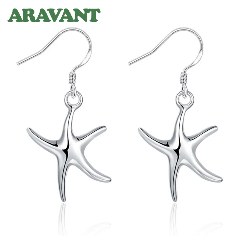 Серьги-капельки из серебра 925 пробы с морской звездой для женщин, модные ювелирные изделия