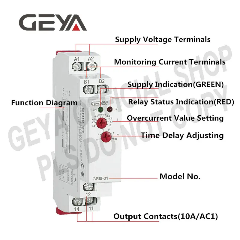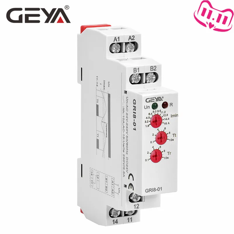 Реле мониторинга сверхтока GEYA GRI8-01 10 А, датчик тока на Din-рейке, монитор переменногоDC24V-240V тока