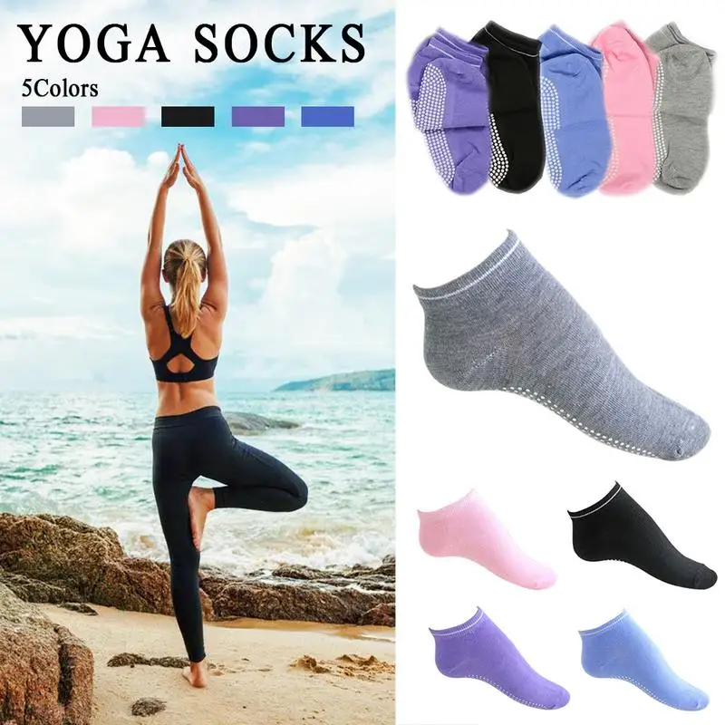Носки женские хлопковые нескользящие для фитнеса и спорта, 5 цветов